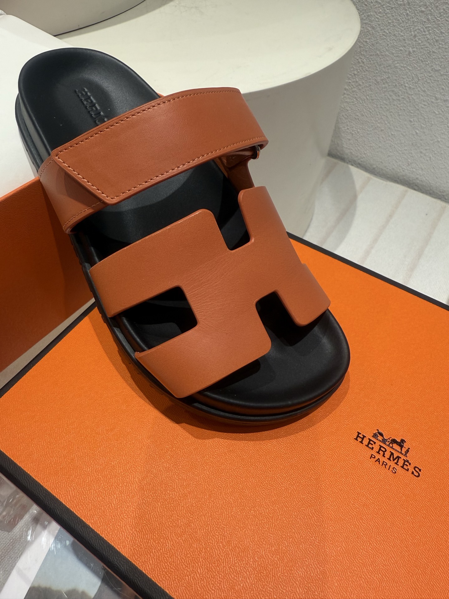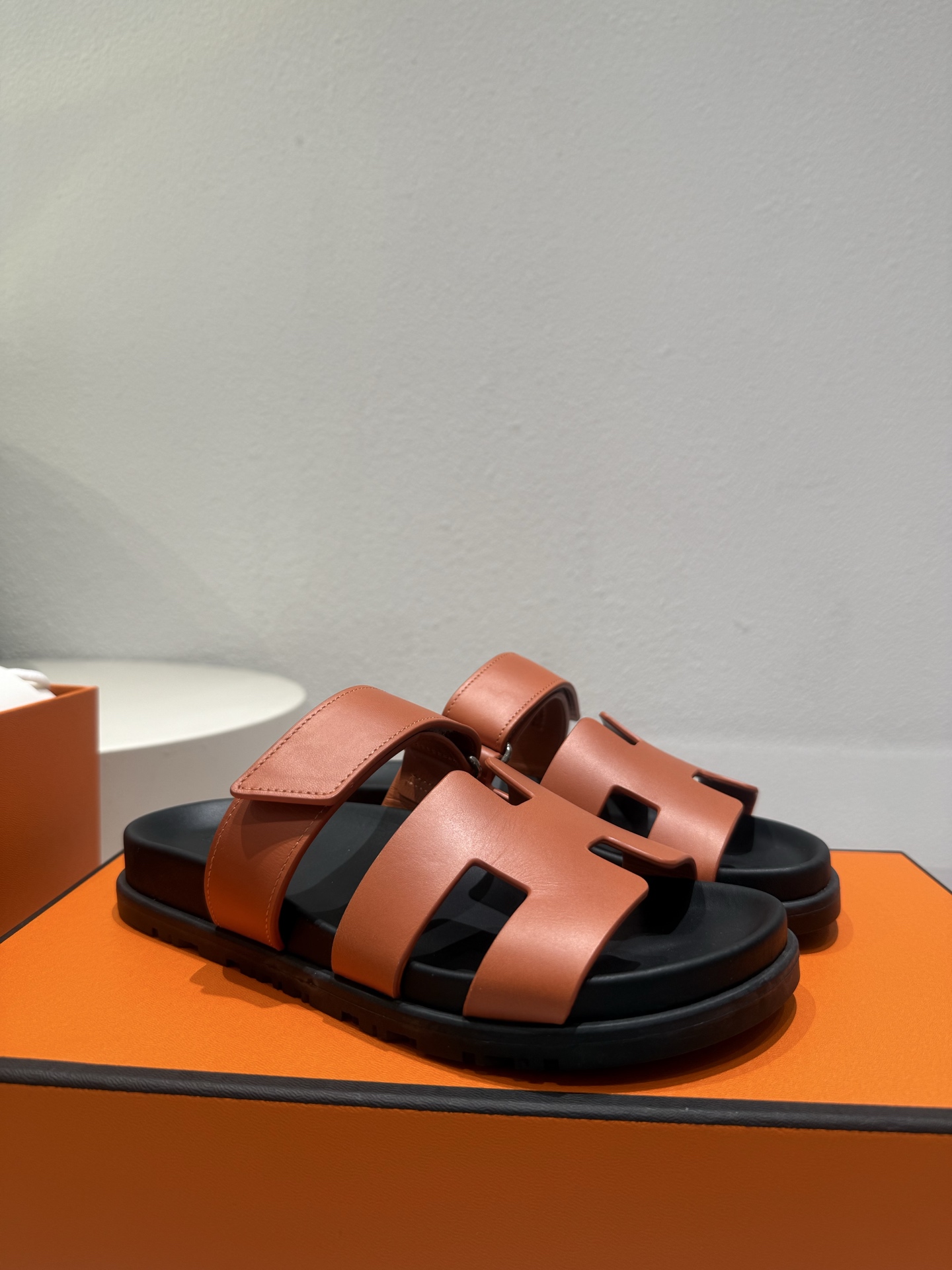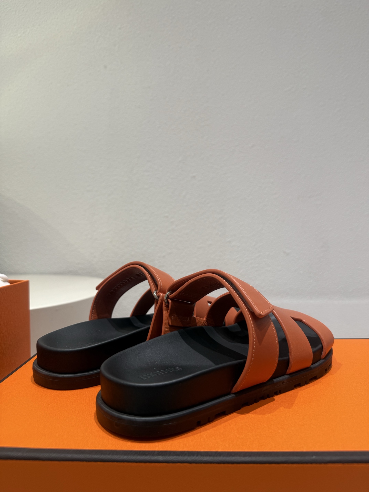 Introducing the Hermès Caramel Leather Adjustable Slides