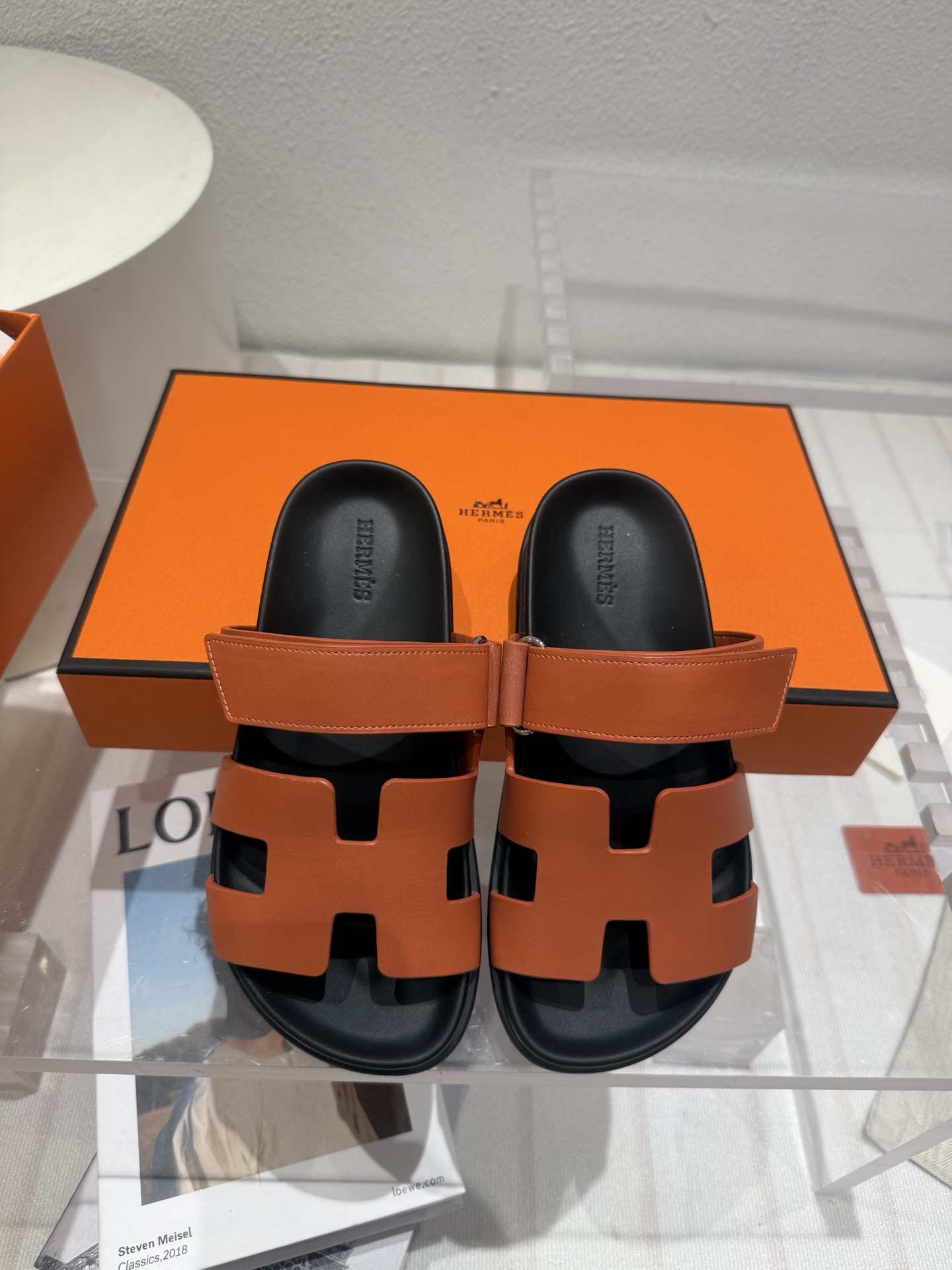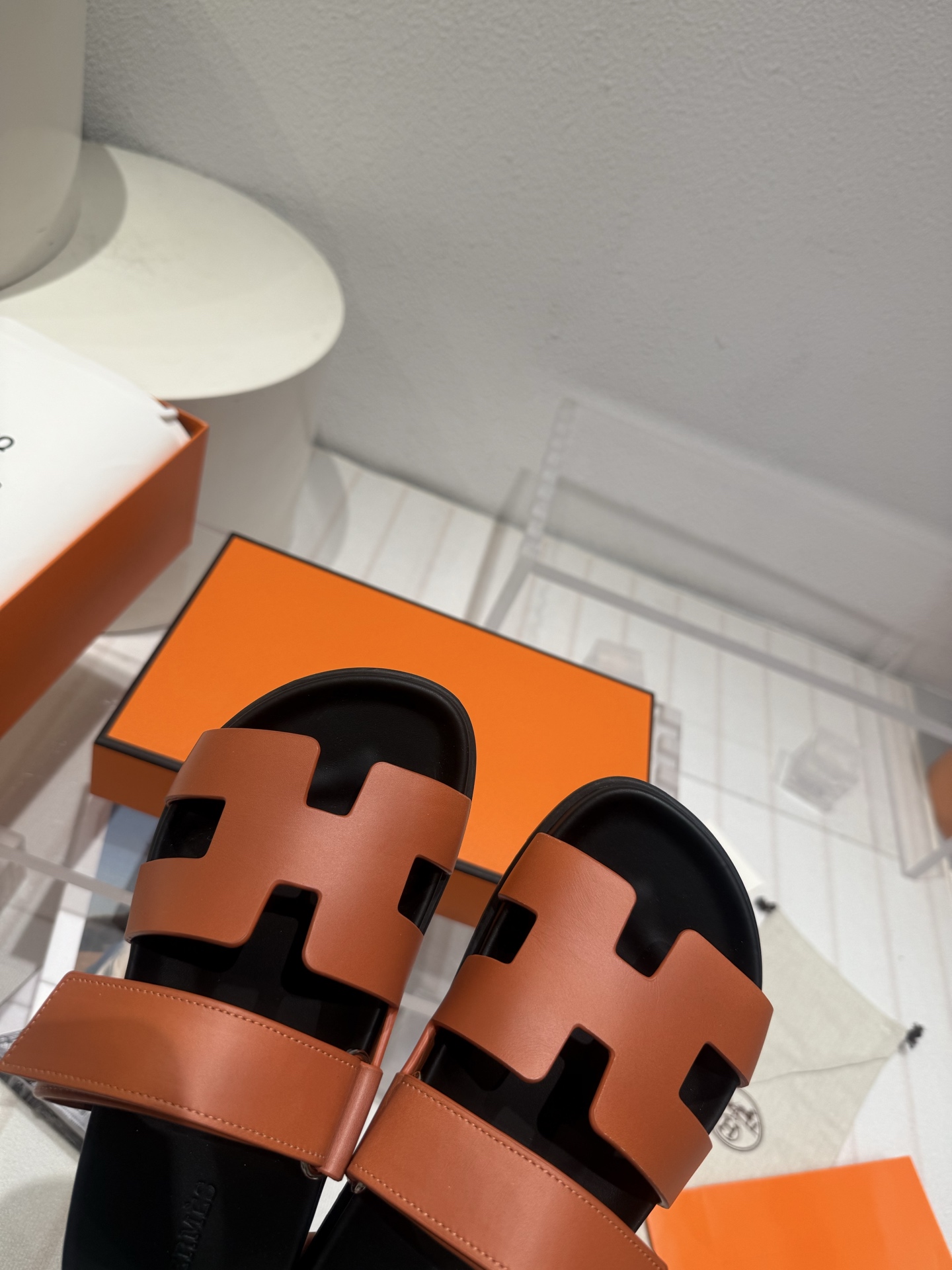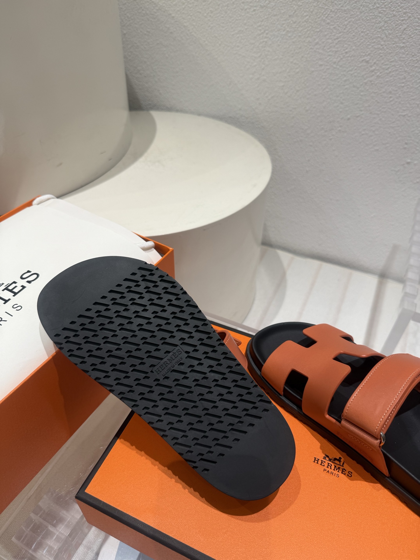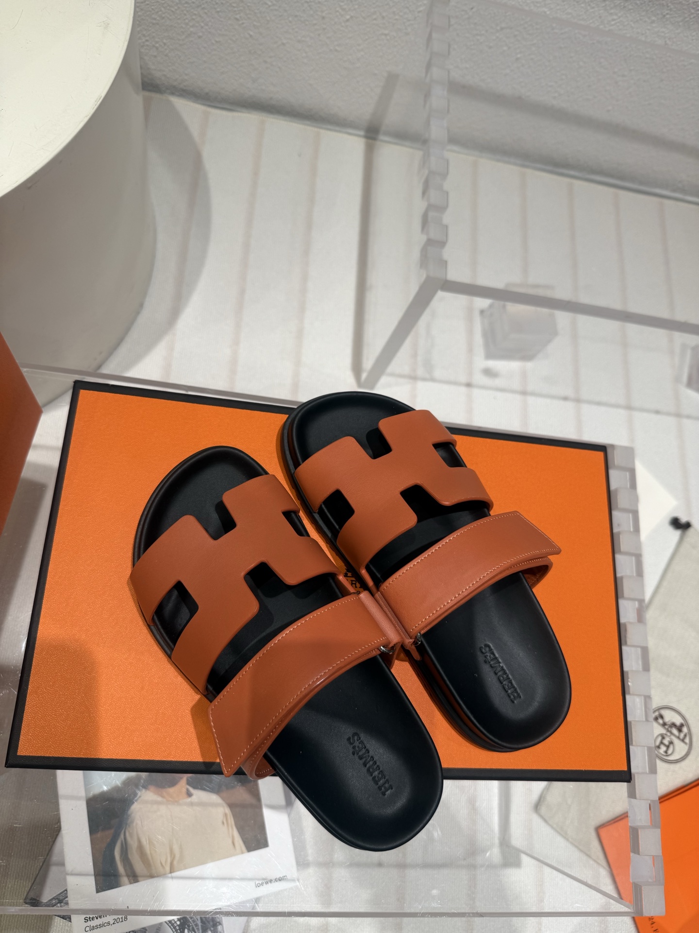Introducing the Hermès Caramel Leather Adjustable Slides