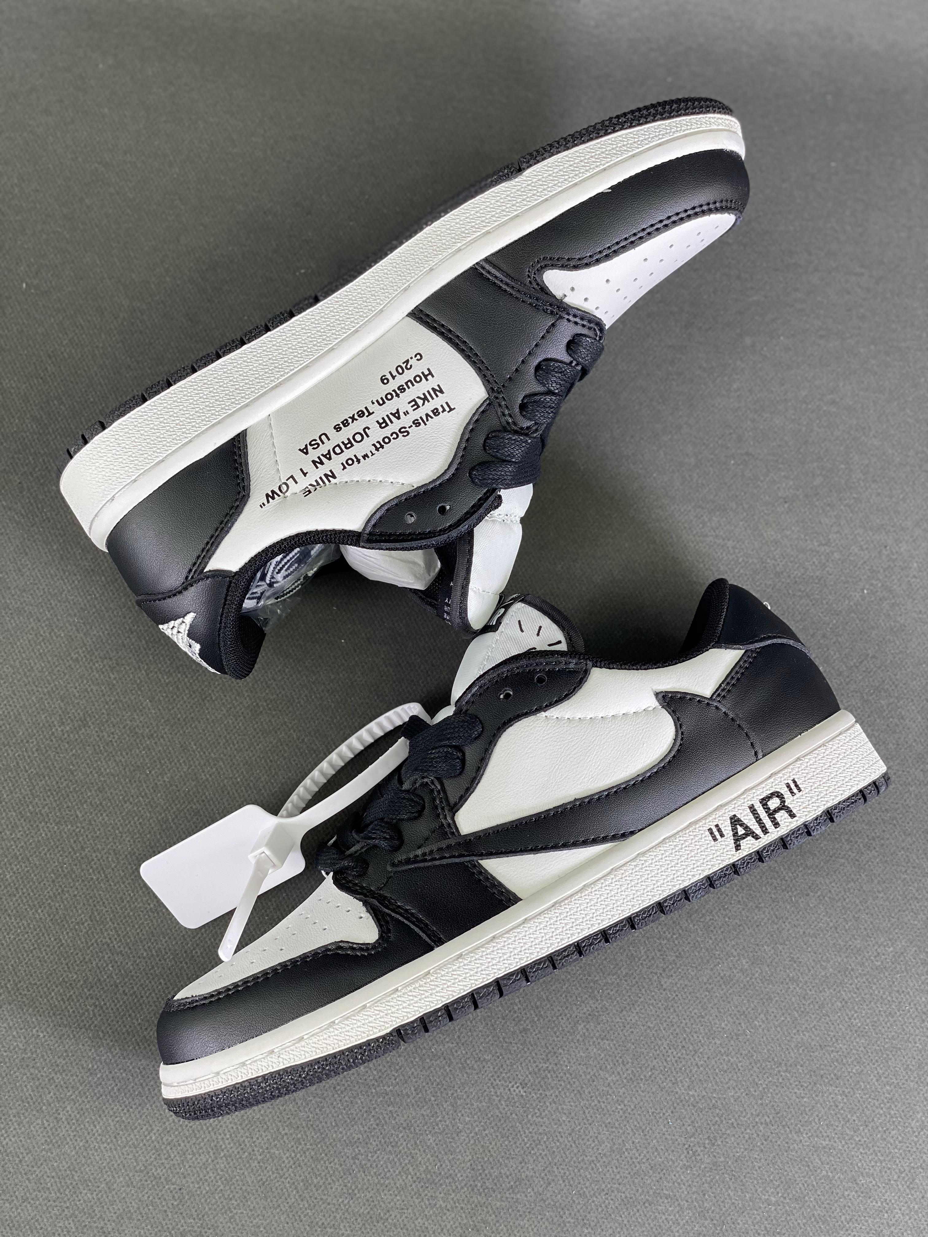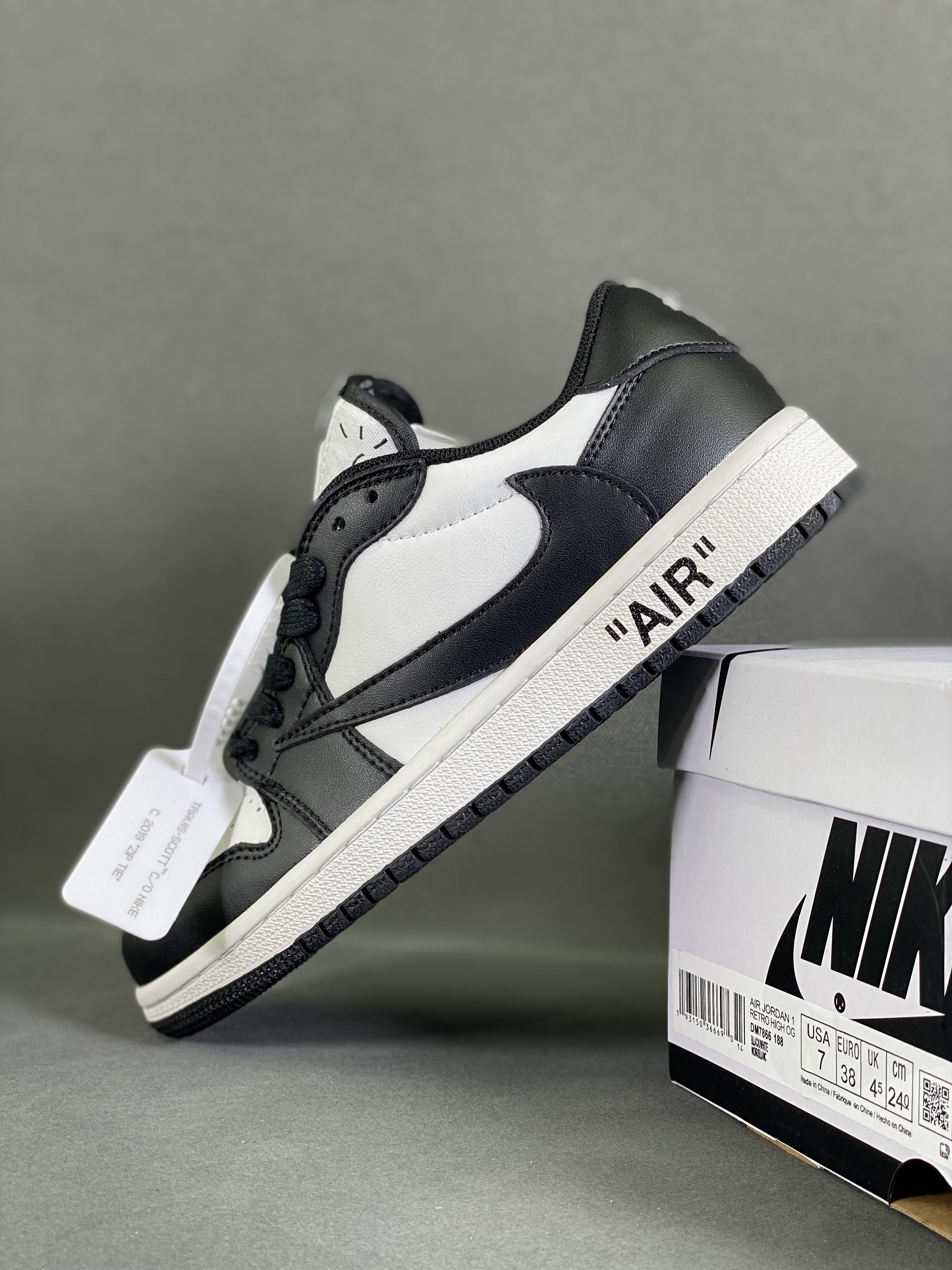 In this particular iteration, we see a bold play on contrasts. The monochrome black and white color palette provides a sophisticated foundation, while the oversized, reversed swoosh and technical typography on the midsole showcase a daring approach to branding. These elements are inspired by the most sought-after design houses, making the Nike Air Jordan Low a must-have for those who appreciate the intersection of sports and high fashion.