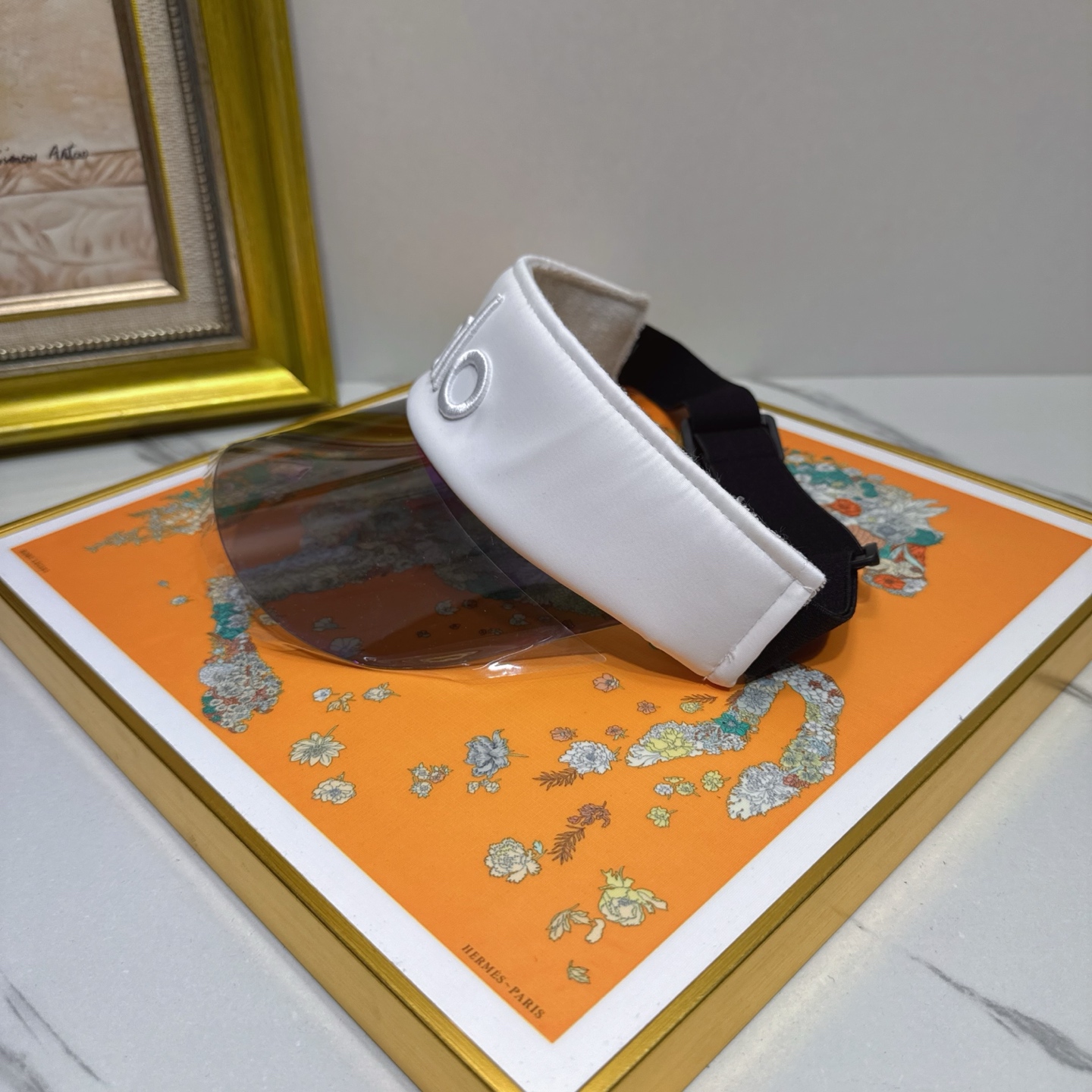 Introducing the Alo Yoga White Visor with Gold Cage Detail