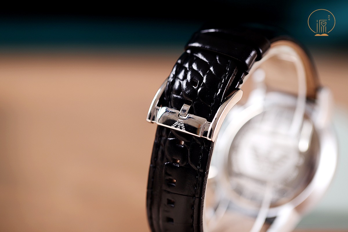 The stainless steel case is often finished with a polished or brushed surface. The dial may feature applied hour markers or printed numerals. The leather strap is typically stitched for added durability and style. The buckle or clasp is usually made of stainless steel and may be engraved with the Emporio Armani logo. The movement is typically a quartz movement, which is known for its accuracy and reliability.