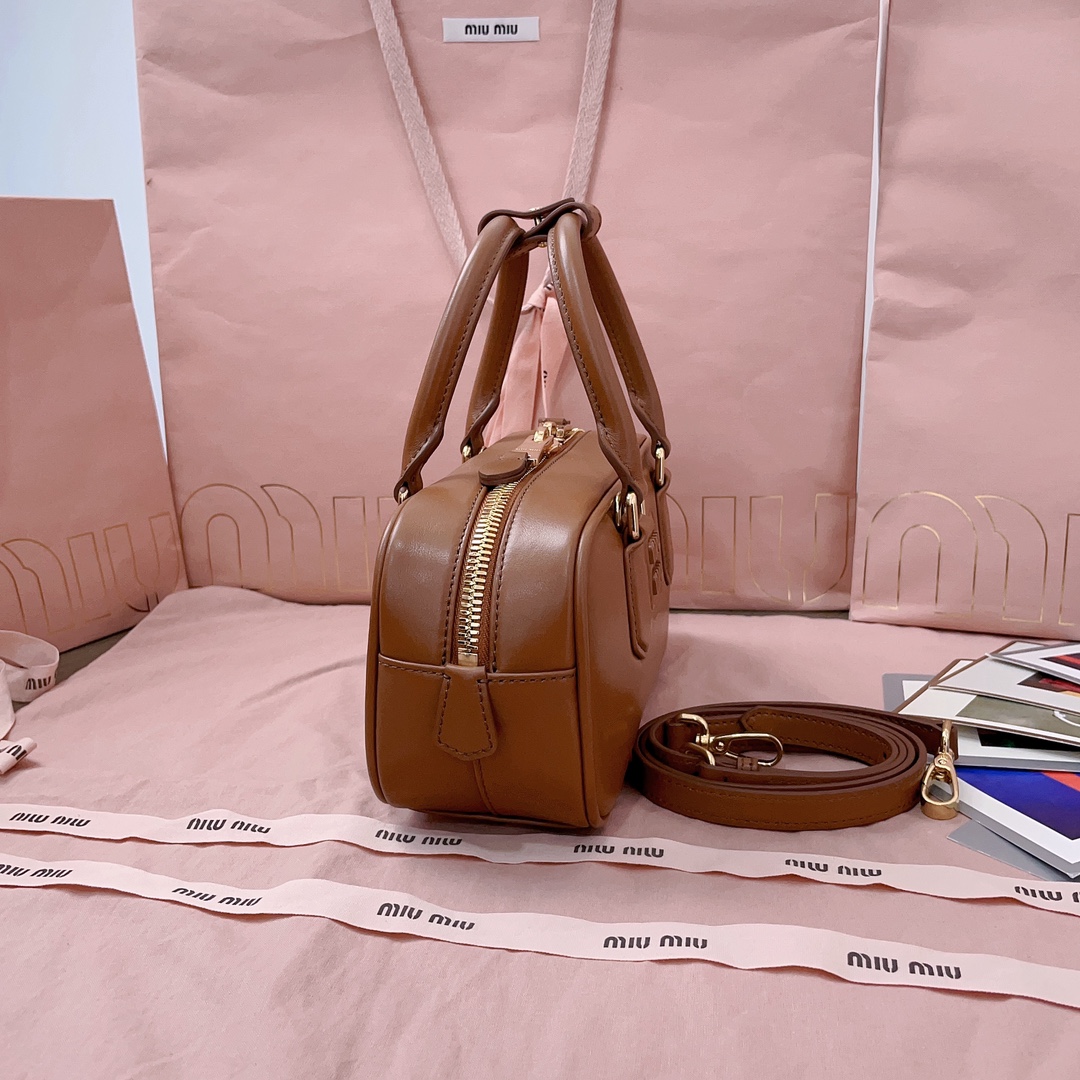 Introducing the Miu Miu Tan Leather Boston Bag