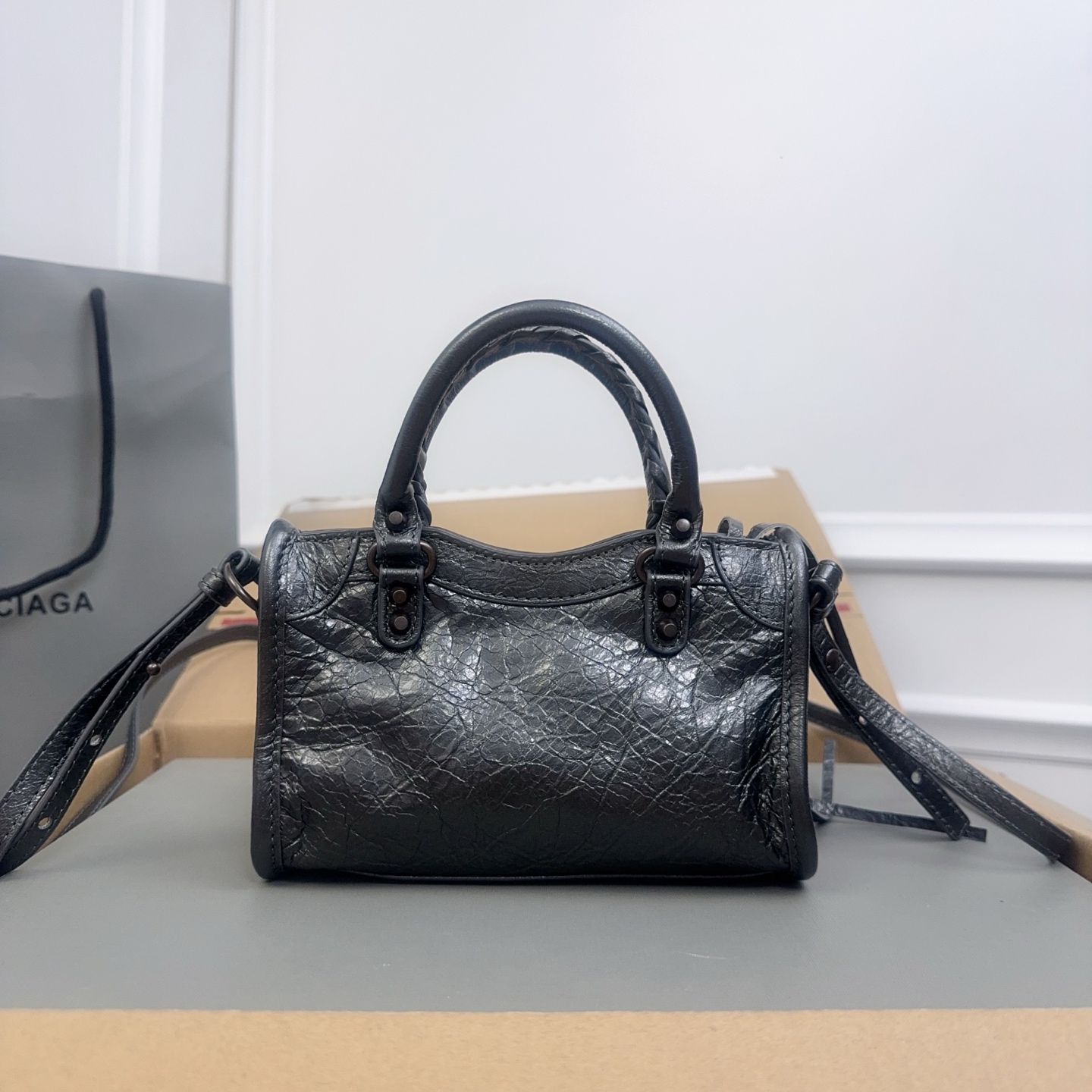 Here are some frequently asked questions to help you learn more about the Balenciaga Black Textured Leather Mini Bag: