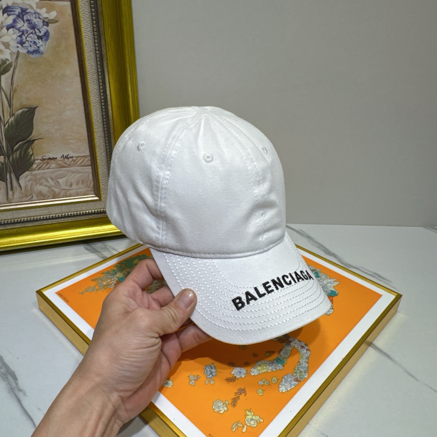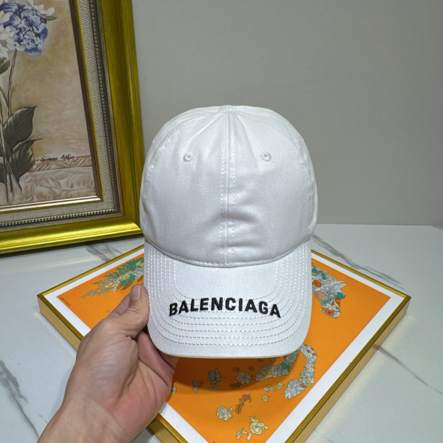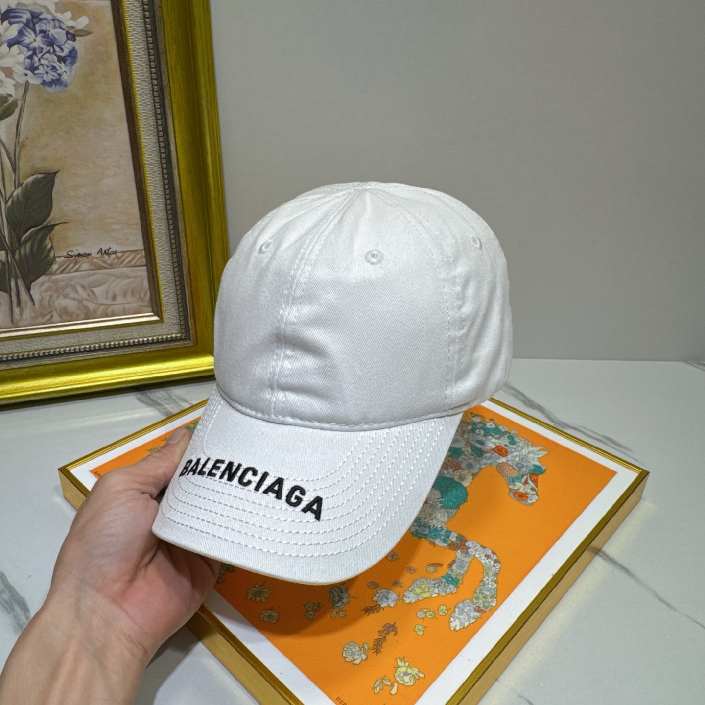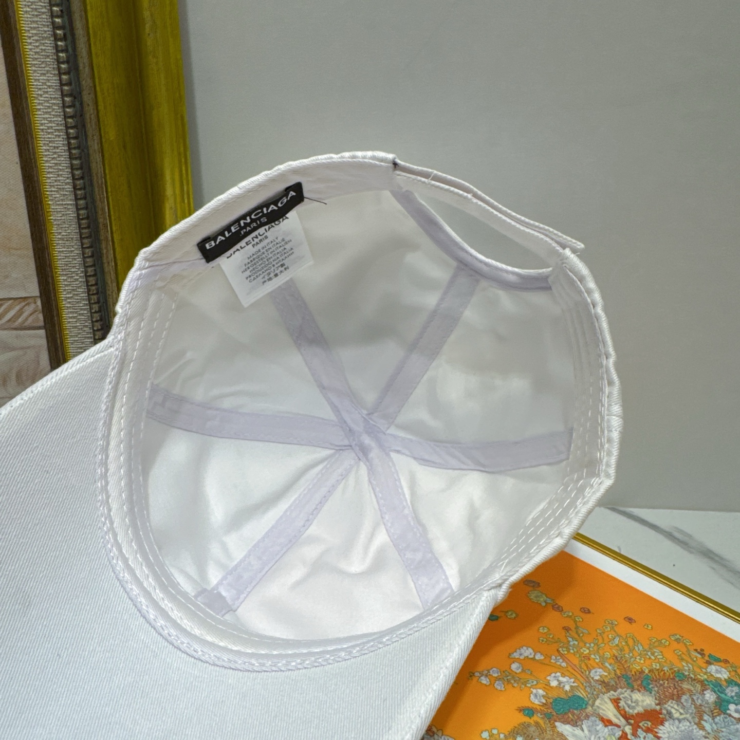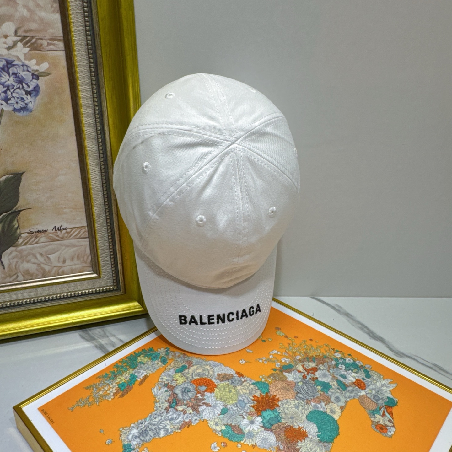 Avoid wringing or twisting the cap, as this can distort its shape. Allow the cap to air dry in a cool, well-ventilated area, away from direct sunlight or heat. To maintain the shape of the cap while it is drying, you can place it on a clean, dry surface or use a hat form. Store the cap in a cool, dry place when not in use to prevent mildew or discoloration. With proper care, your Balenciaga White Cotton Baseball Cap will remain a stylish and valuable accessory for years to come.