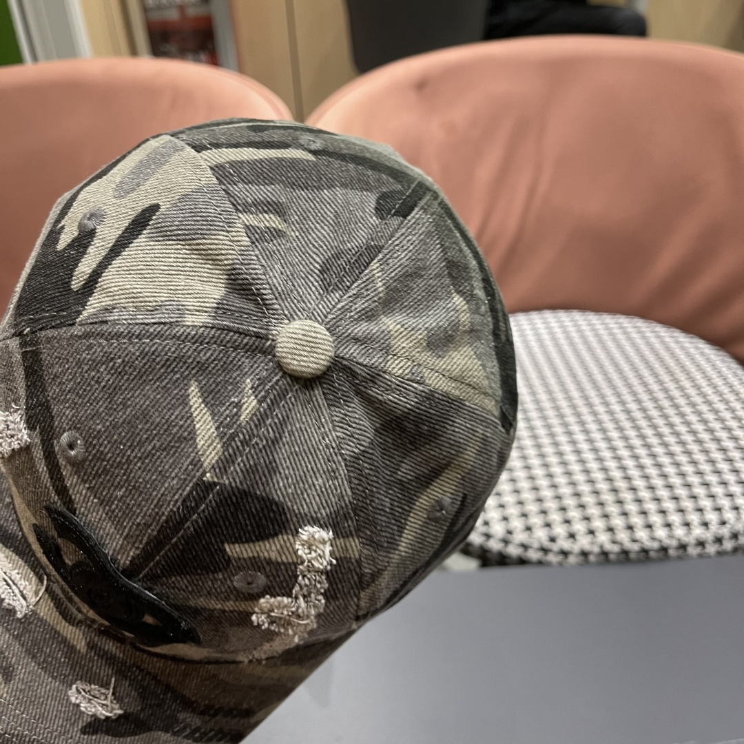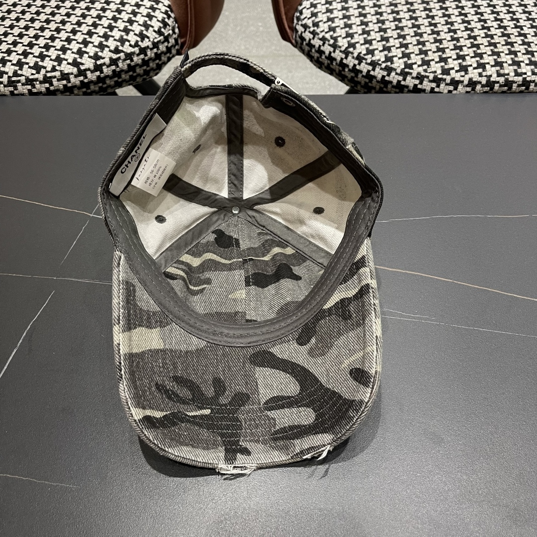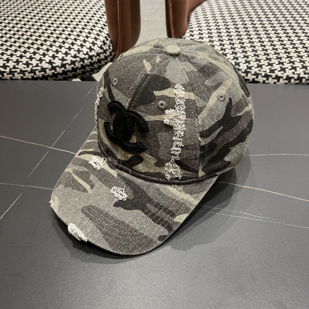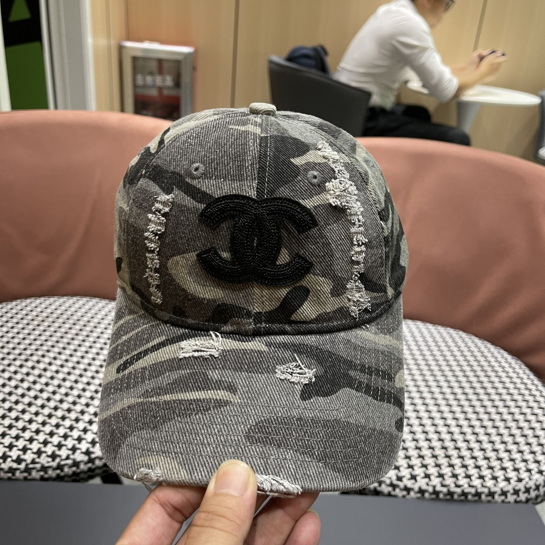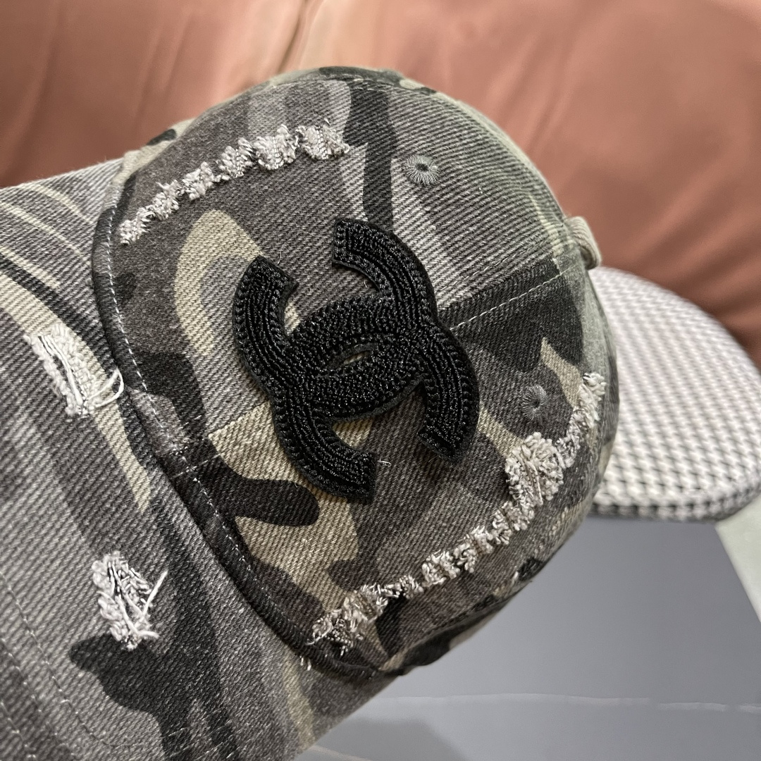 baseball Chanel Camo Distressed Cap - The Chanel Distressed Camo Baseball Cap is the perfect blend of high-end fashion and urban streetwear. This eye-catching accessory combines the iconic Chanel logo with a rugged, distressed camouflage pattern, making it a must-have for fashion enthusiasts who want to make a bold statement.