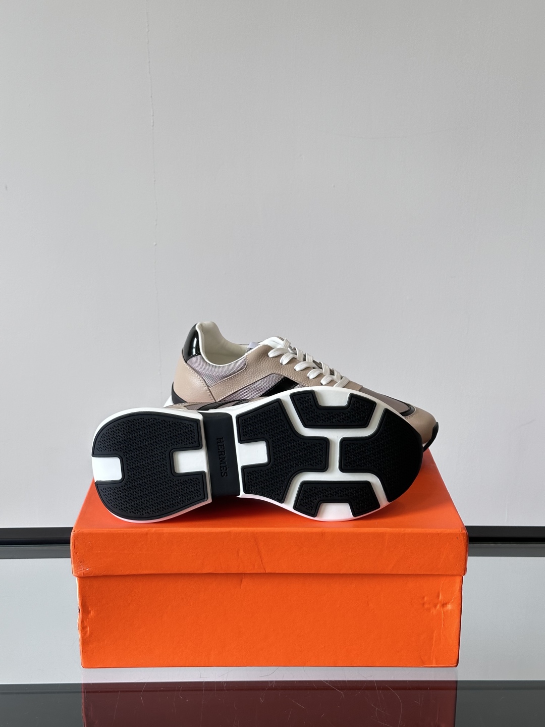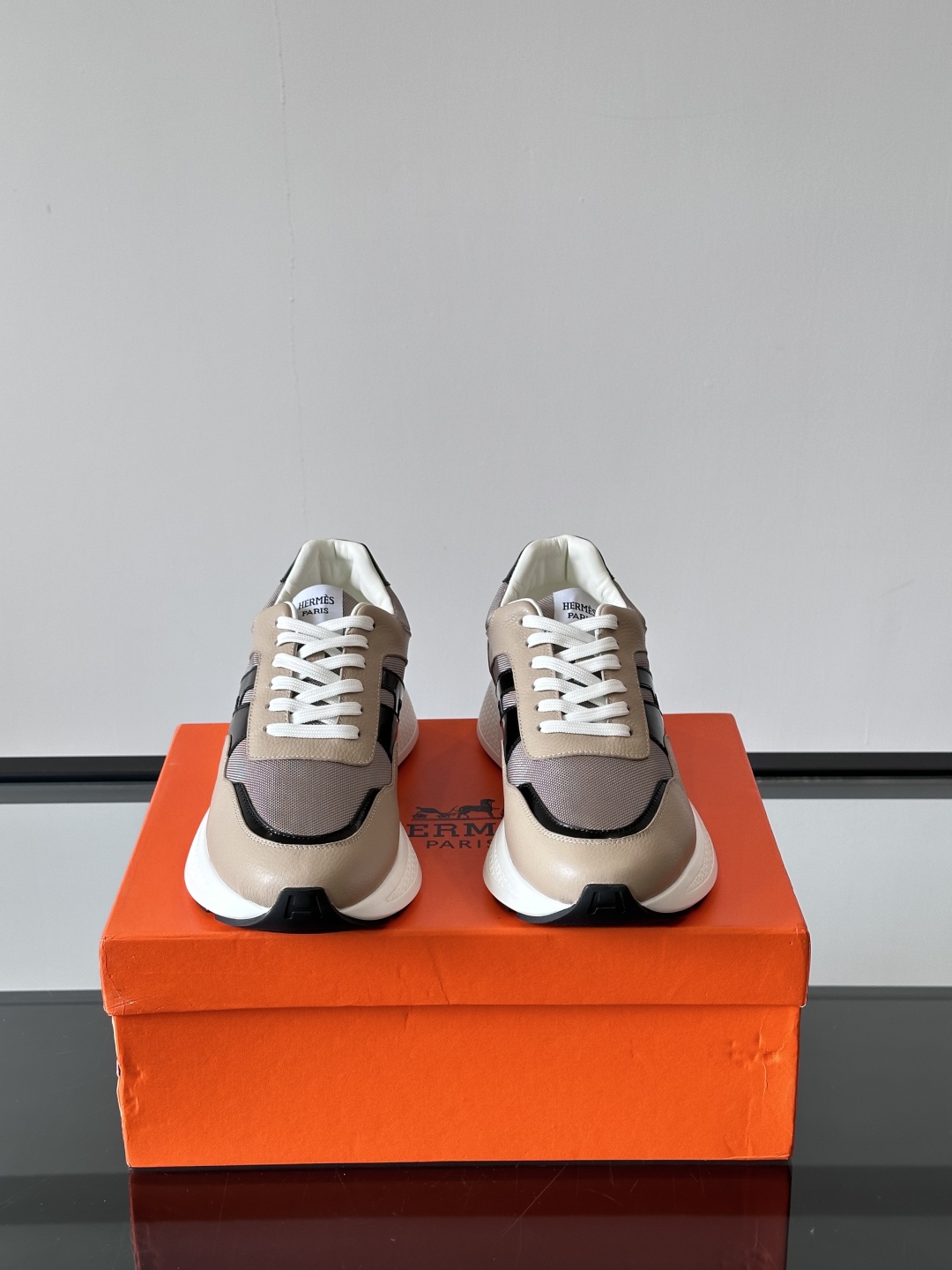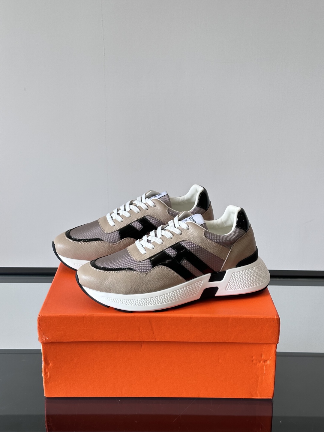 Introducing the Hermès Taupe Leather Sneakers
