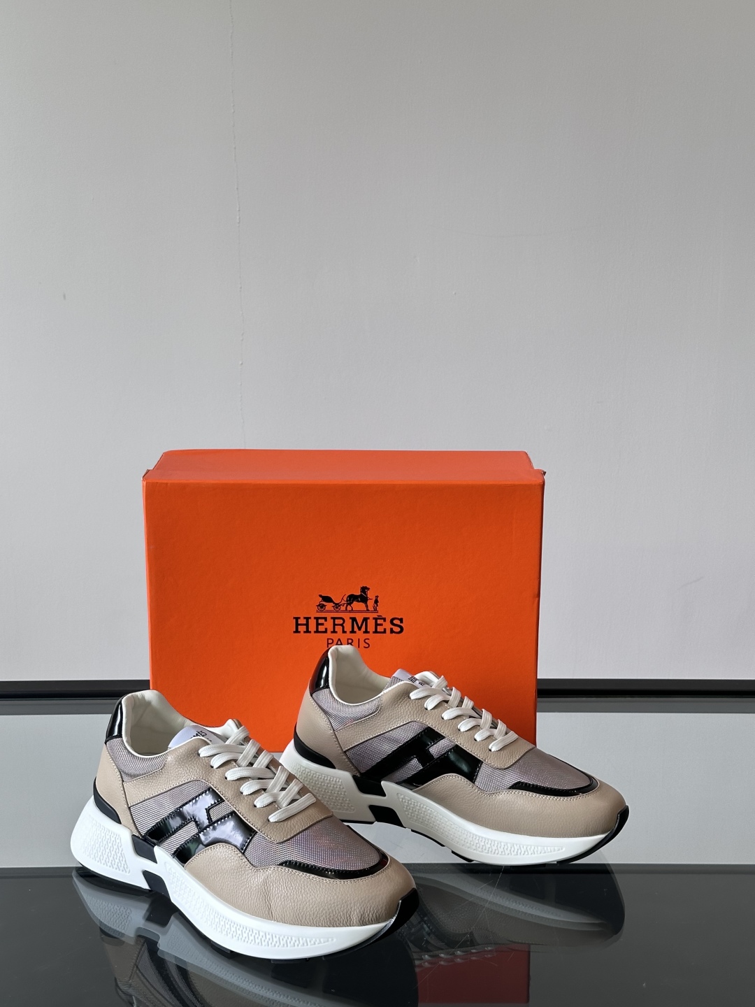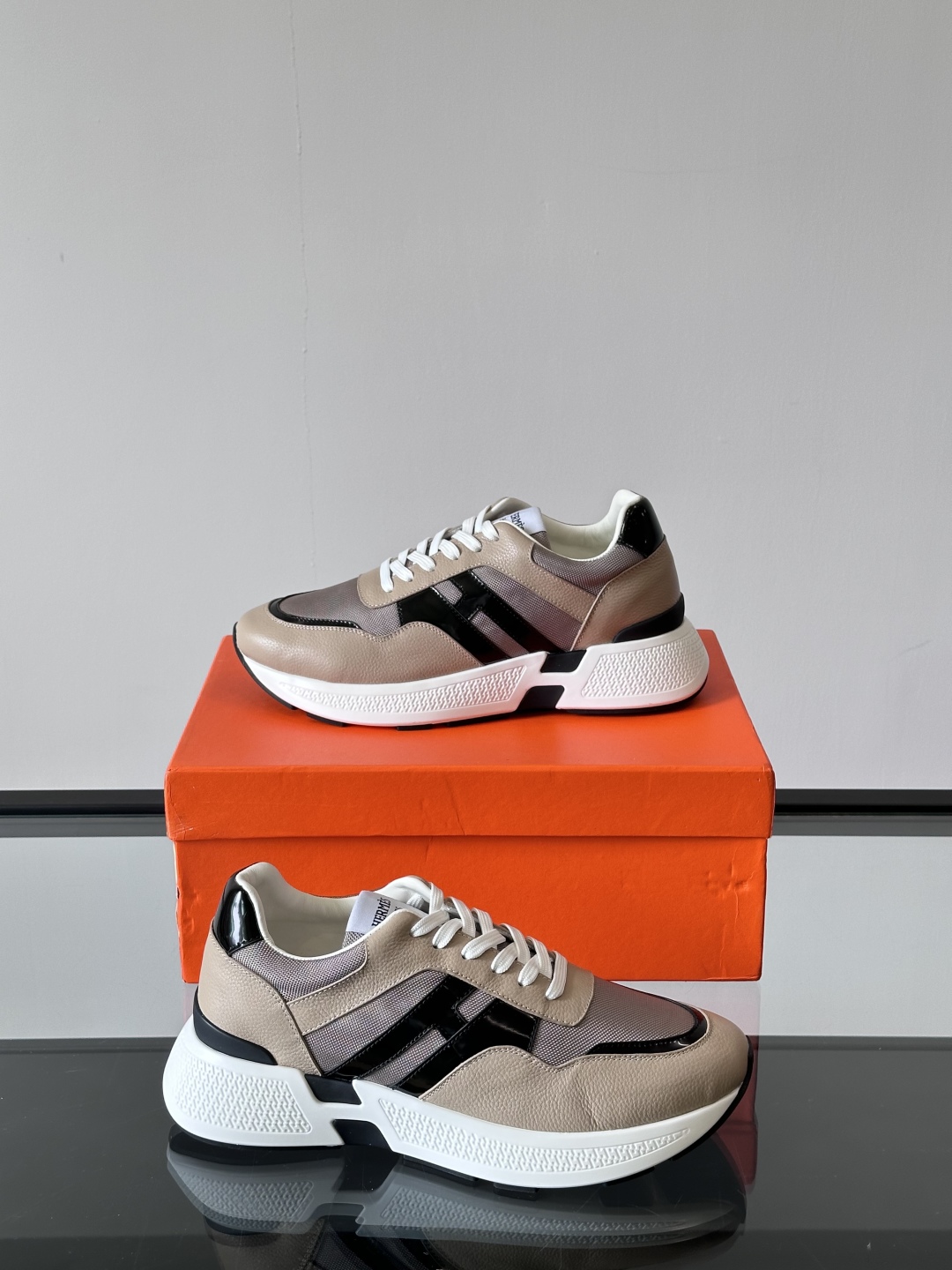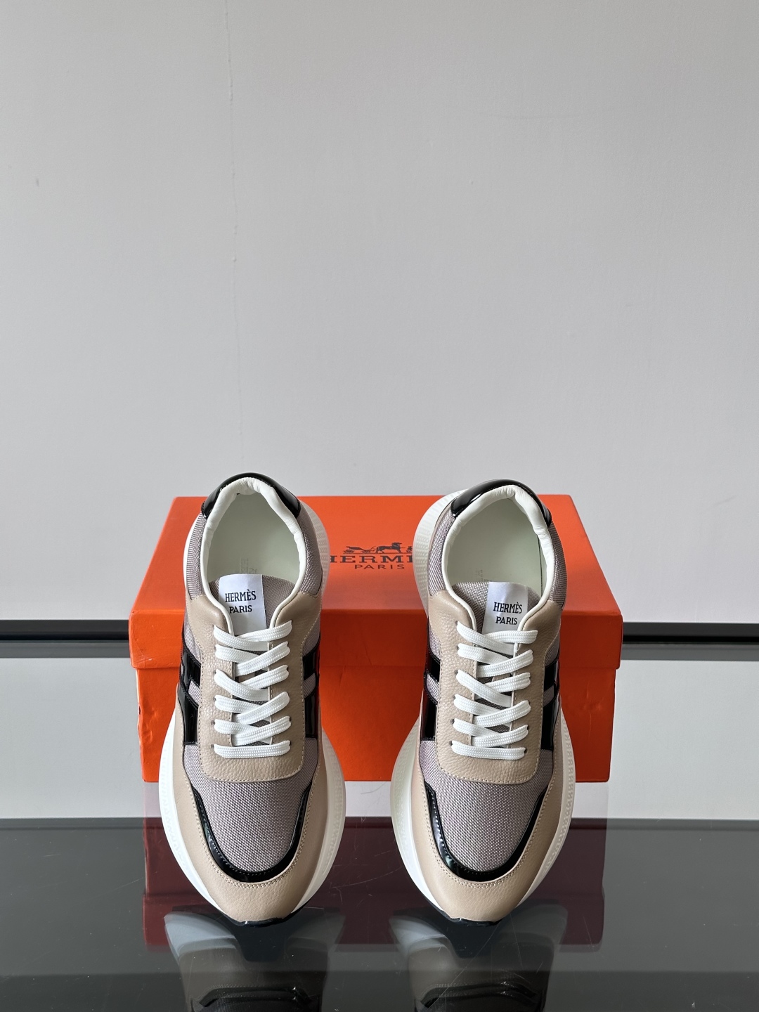 Introducing the Hermès Taupe Leather Sneakers