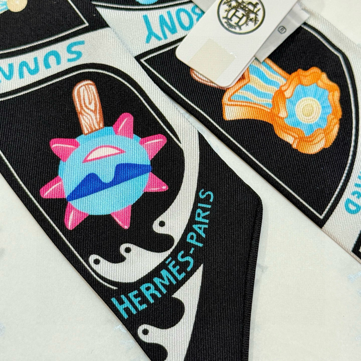 Why Choose the Hermès Black & White 'Funny Ice Cream' Twilly Scarf?