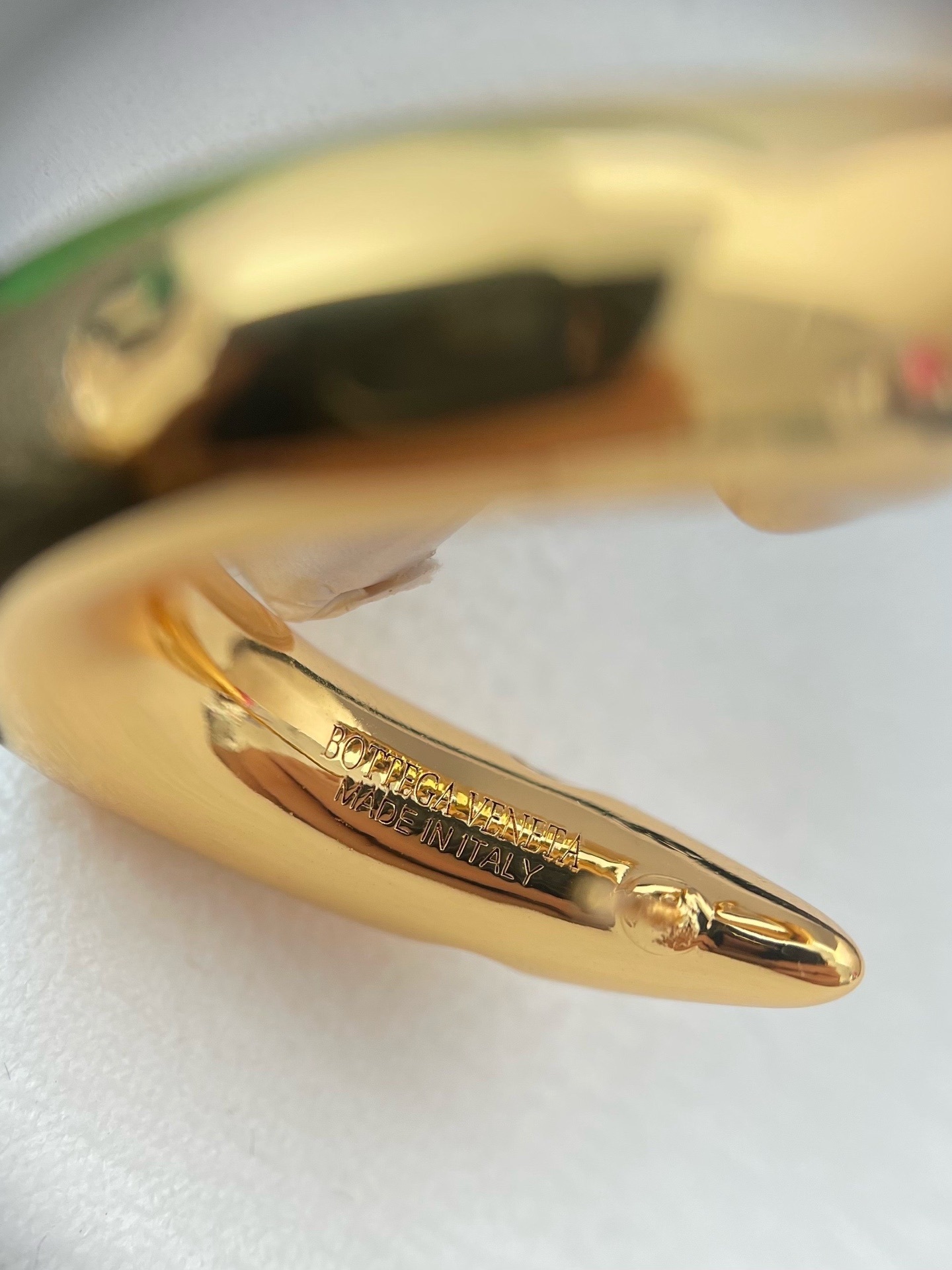 bold designer Bottega Veneta Gold Hoop Earrings - Elevate your style with the Bottega Veneta Bold Gold Hoop Earrings. These stunning earrings are more than just accessories; they are a statement of sophistication and luxury. Crafted with meticulous attention to detail, these earrings feature a bold, modern design that will instantly enhance any outfit. The rich gold finish exudes elegance and timeless appeal, making them a perfect addition to your jewelry collection. Whether you're dressing up for a special occasion or adding a touch of glamour to your everyday look, the Bottega Veneta Bold Gold Hoop Earrings are the ideal choice to showcase your impeccable taste.