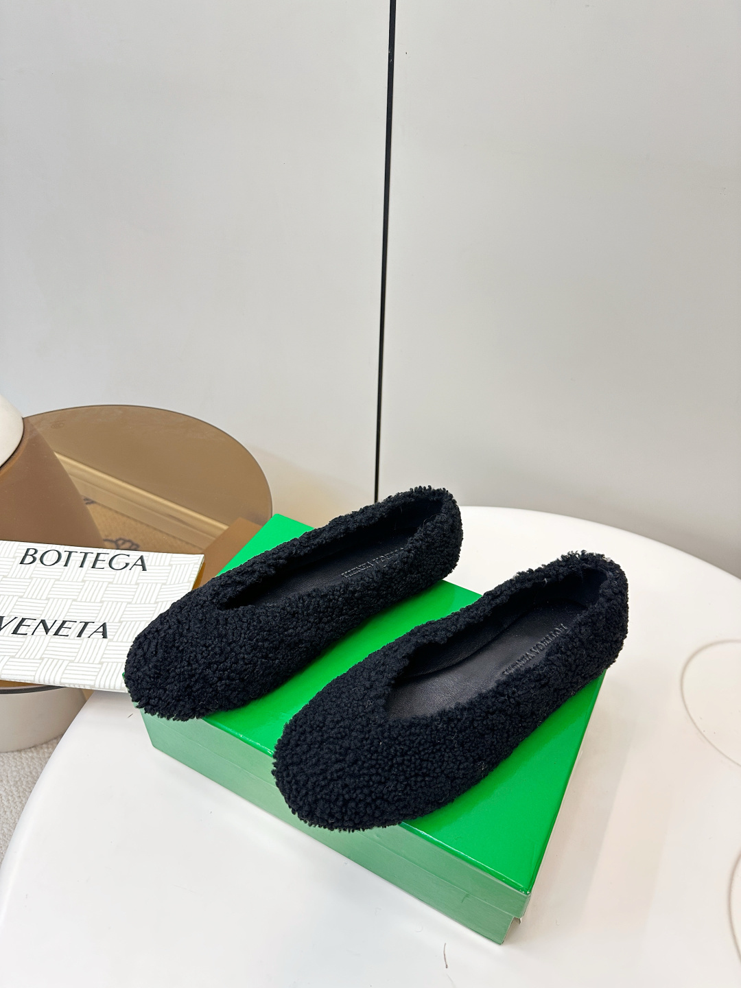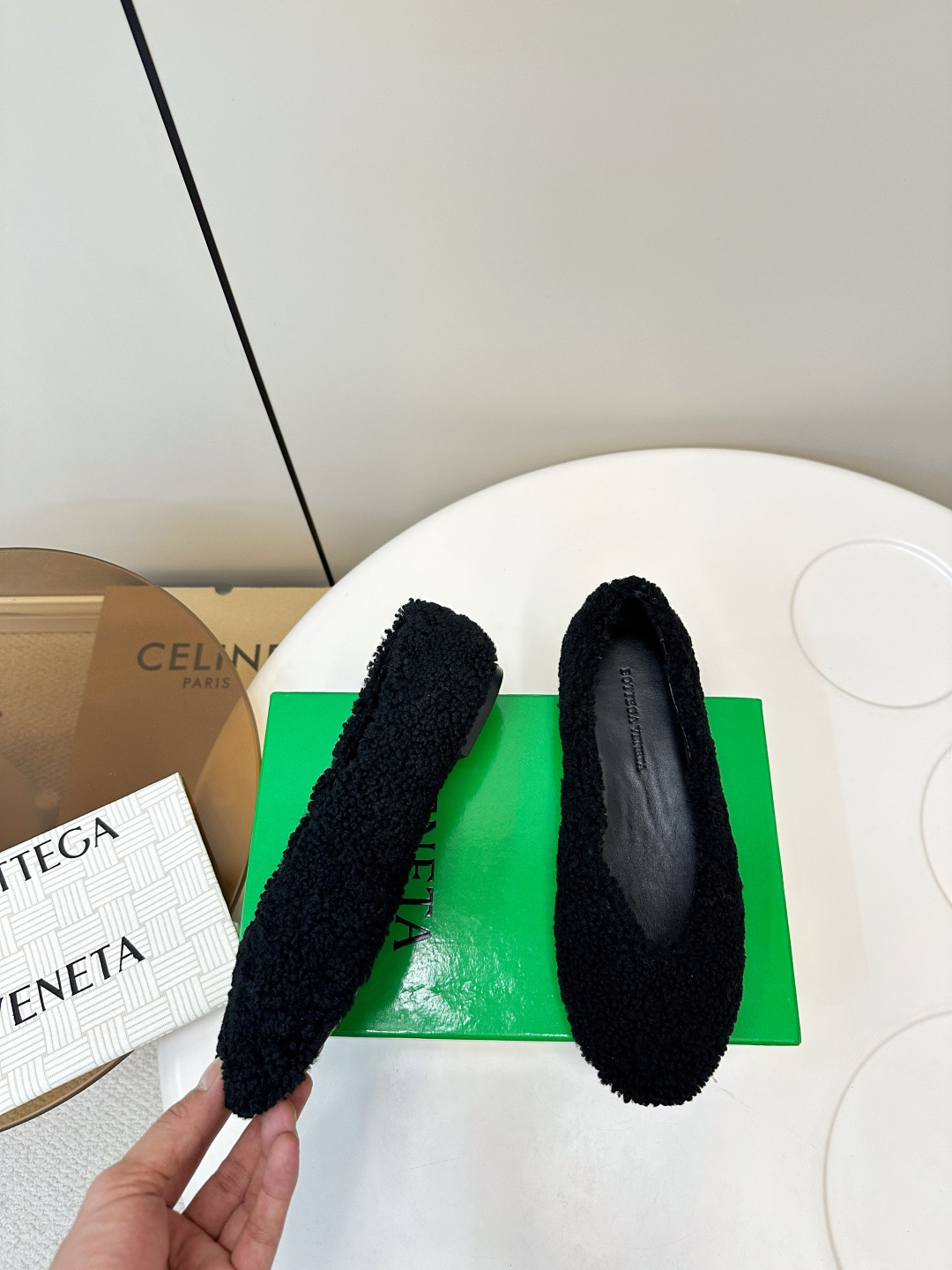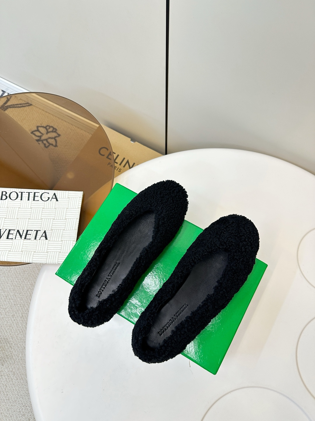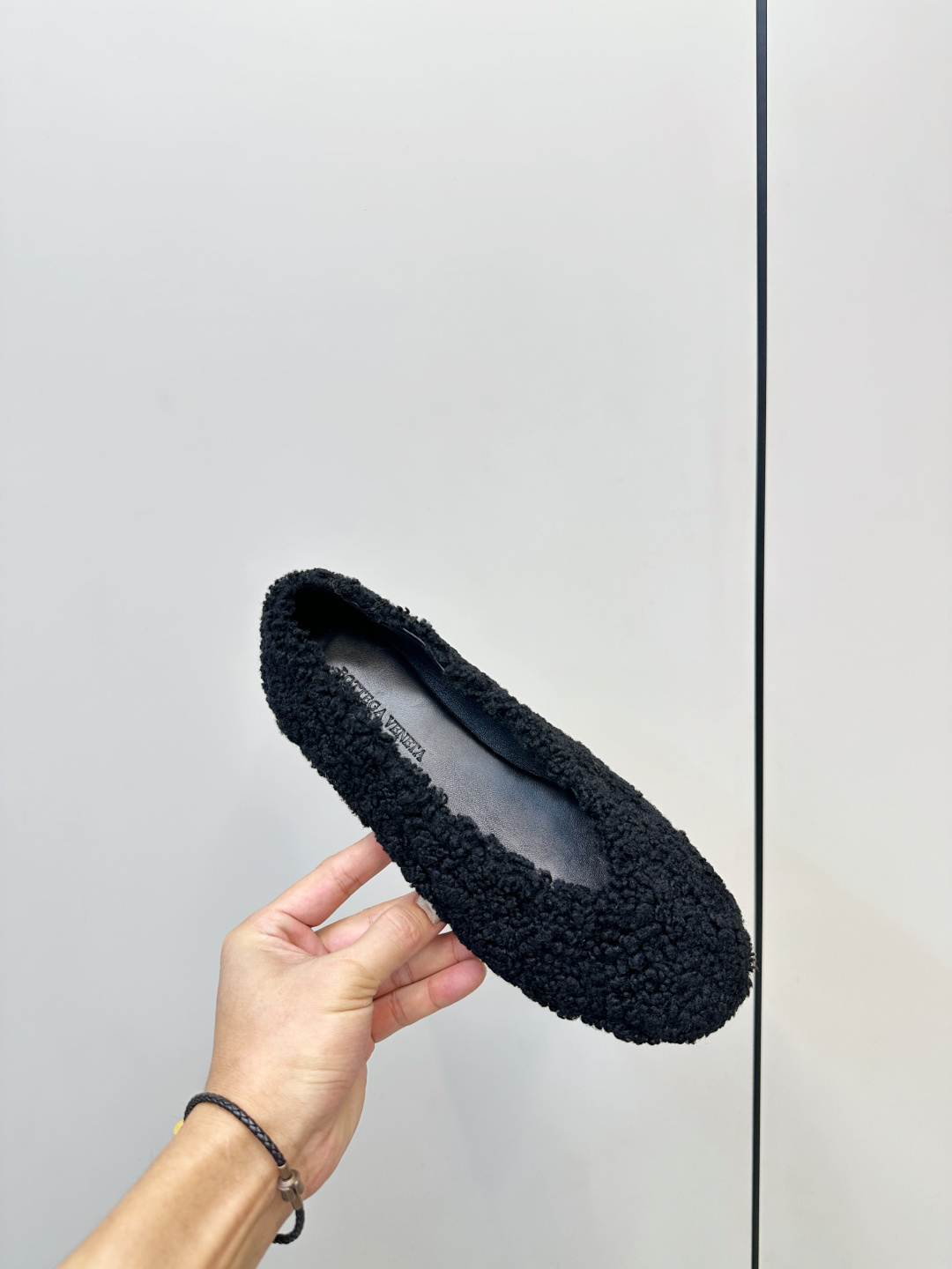 Introducing the Bottega Veneta Black Shearling Ballerina Flats