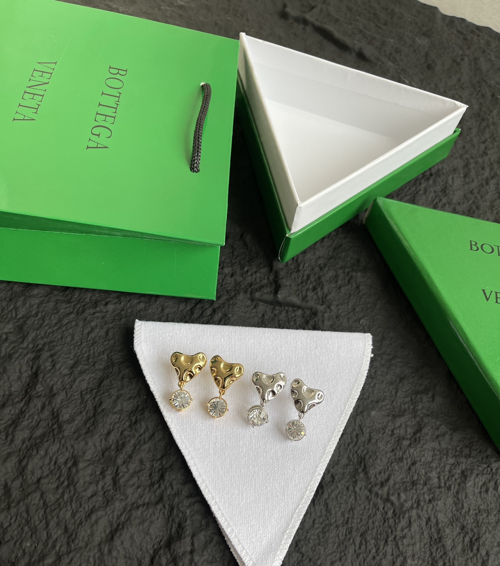 Bottega Veneta Gold Heart Earrings crystal drop - Elevate your style with the exquisite Bottega Veneta Gold Heart Crystal Drop Earrings. These stunning earrings are the perfect blend of elegance and modern design, making them an ideal accessory for any occasion. Crafted with meticulous attention to detail, these earrings feature a delicate gold heart design accented with a sparkling crystal drop, adding a touch of glamour to your look. The Bottega Veneta brand is synonymous with luxury and sophistication, and these earrings are no exception.