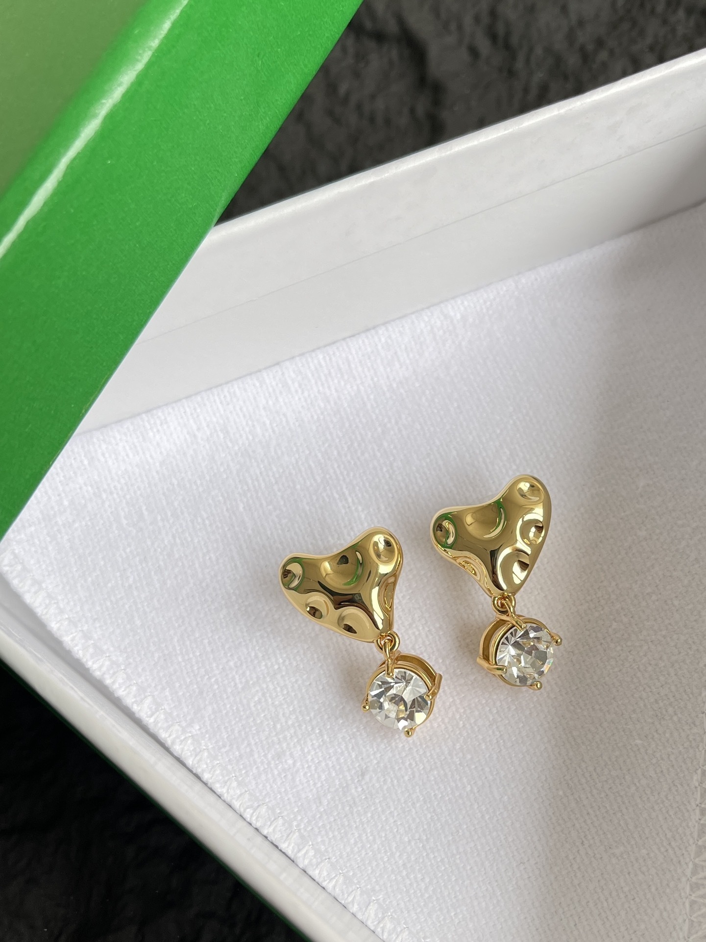 - Introducing Bottega Veneta Gold Heart Crystal Drop Earrings