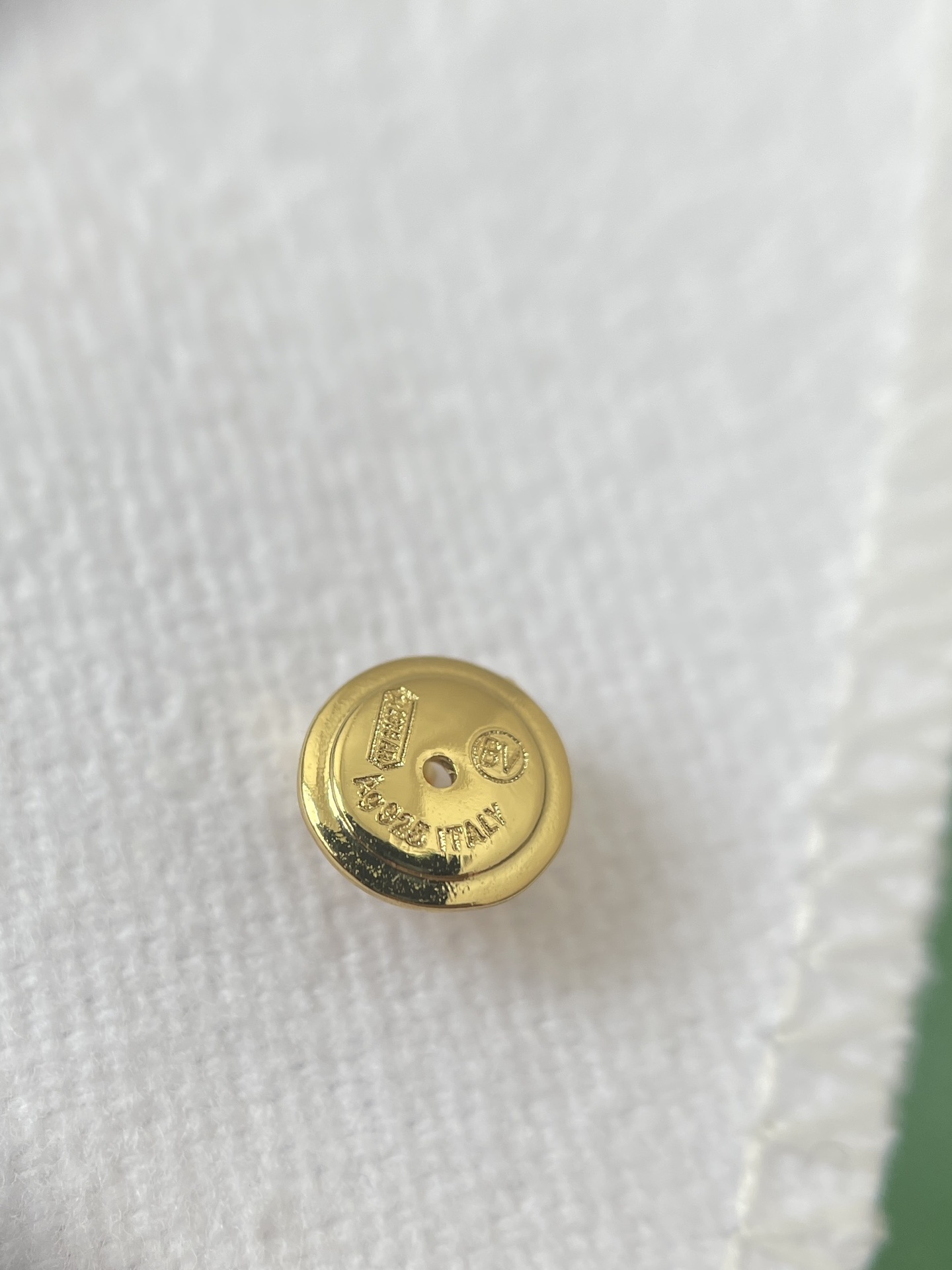 To clean your Bottega Veneta Gold Padded Triangle Earrings, use a soft, lint-free cloth to gently wipe them after each wear. For a more thorough cleaning, you can use a mild soap and warm water solution. Dip the earrings in the solution and gently scrub them with a soft brush. Rinse the earrings thoroughly with clean water and pat them dry with a soft cloth. Avoid using harsh chemicals or abrasive cleaners, as these can damage the gold finish.