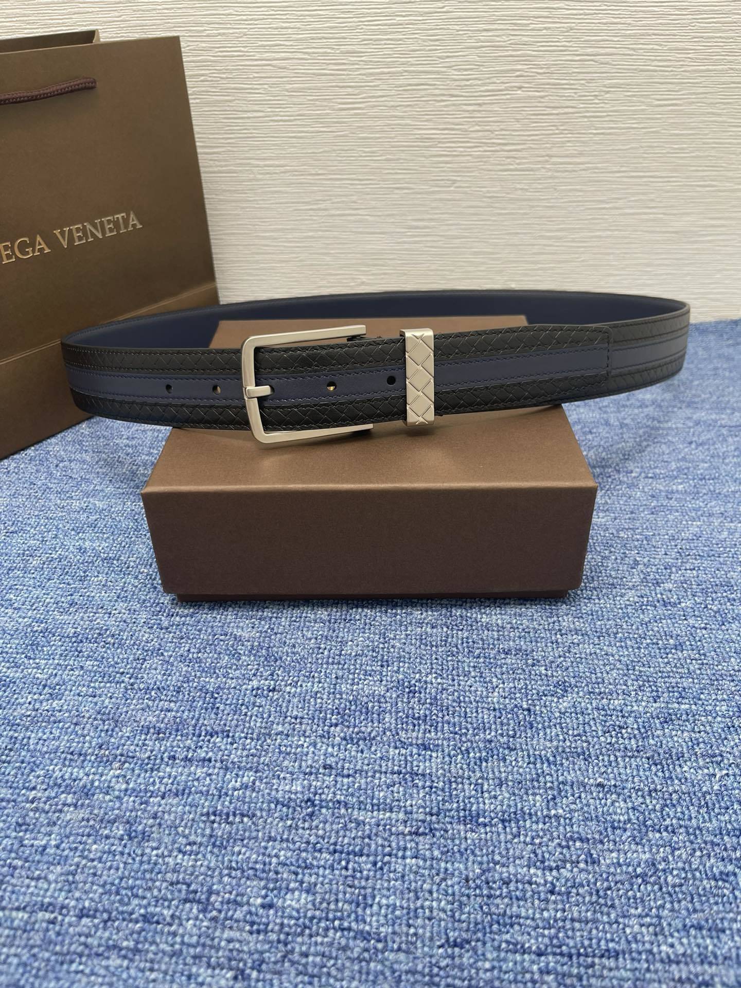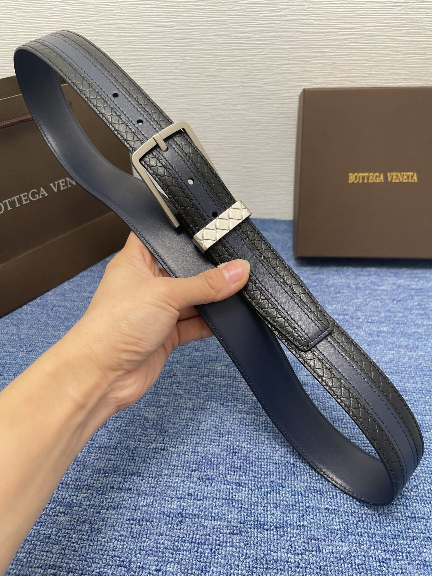 Bottega Veneta Premium Leather Belt - Navy Blue