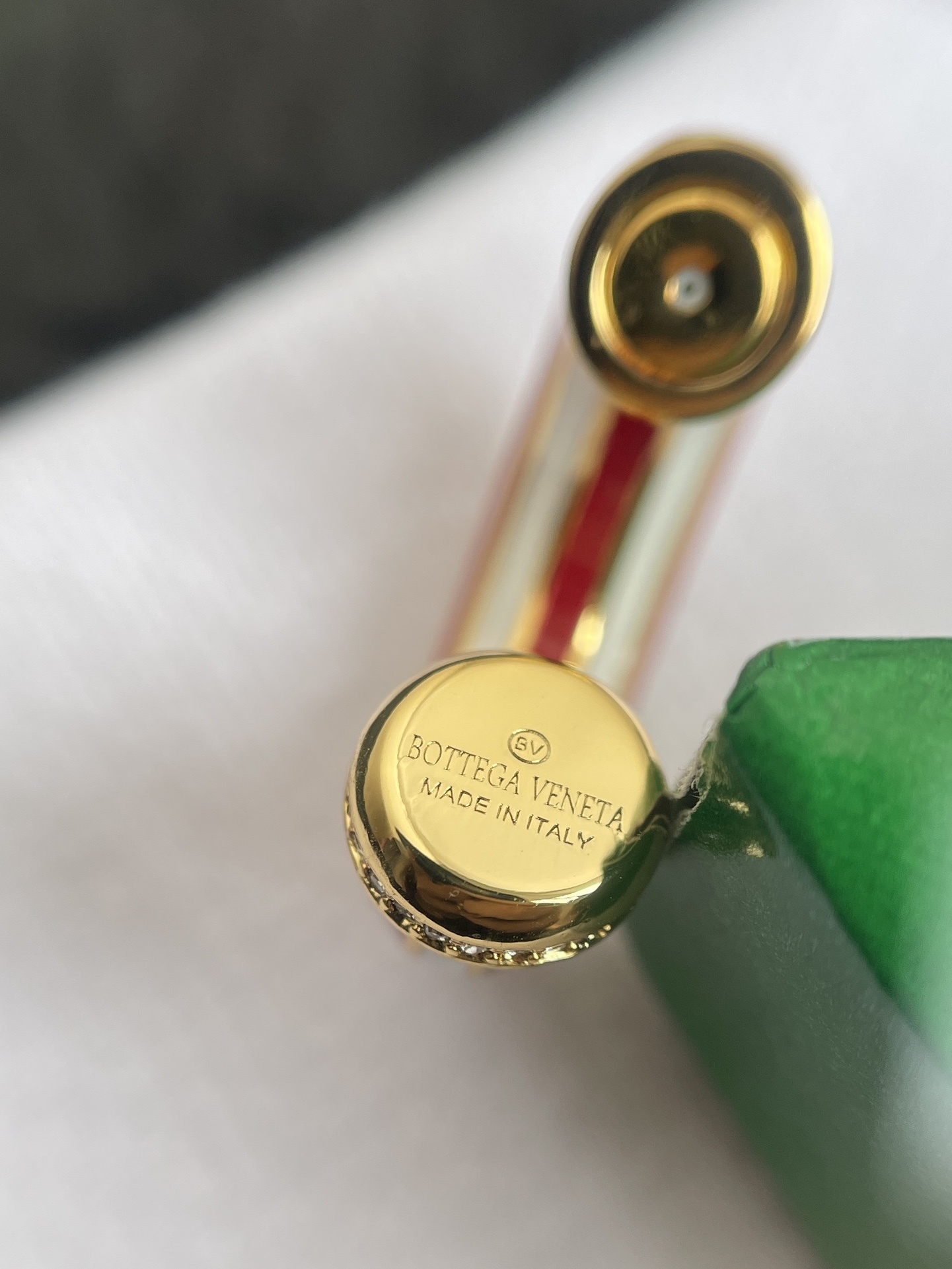 The Bottega Veneta Red & White Hoop Earrings boast several remarkable features that set them apart from ordinary earrings. The combination of red and white enamel creates a visually appealing contrast, while the gold-tone accents add a touch of opulence. These earrings are designed to catch the light and draw attention, making them perfect for those who love to make a statement.
