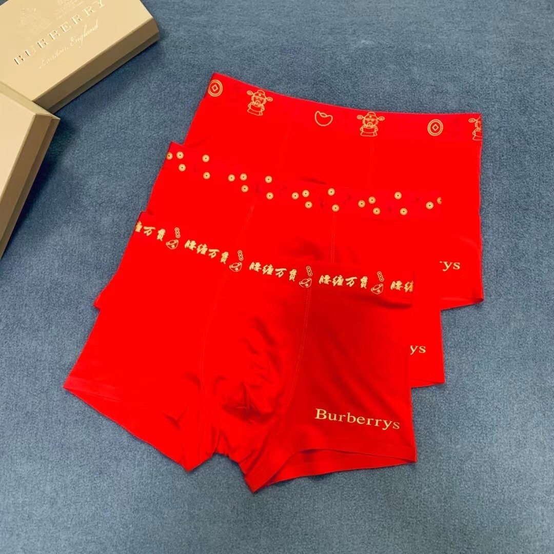 briefs Burberrys Red Lunar Boxer - Celebrate the Lunar New Year in style and comfort with the Burberrys Red Lunar Boxer Briefs. These vibrant red boxer briefs are not only a statement piece but also a symbol of good luck and prosperity. Crafted with premium materials and featuring the iconic Burberrys logo, these boxer briefs offer a luxurious and comfortable fit for everyday wear. The unique design incorporates traditional Lunar New Year motifs, making them a perfect gift or a special treat for yourself. Find more about the history of boxer briefs on product background on Wikipedia.