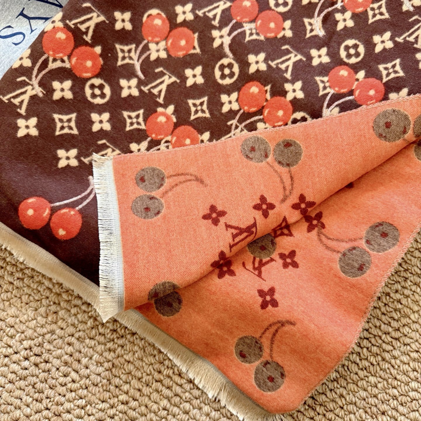 - brown Louis Vuitton Cherry Monogram Shawl Features