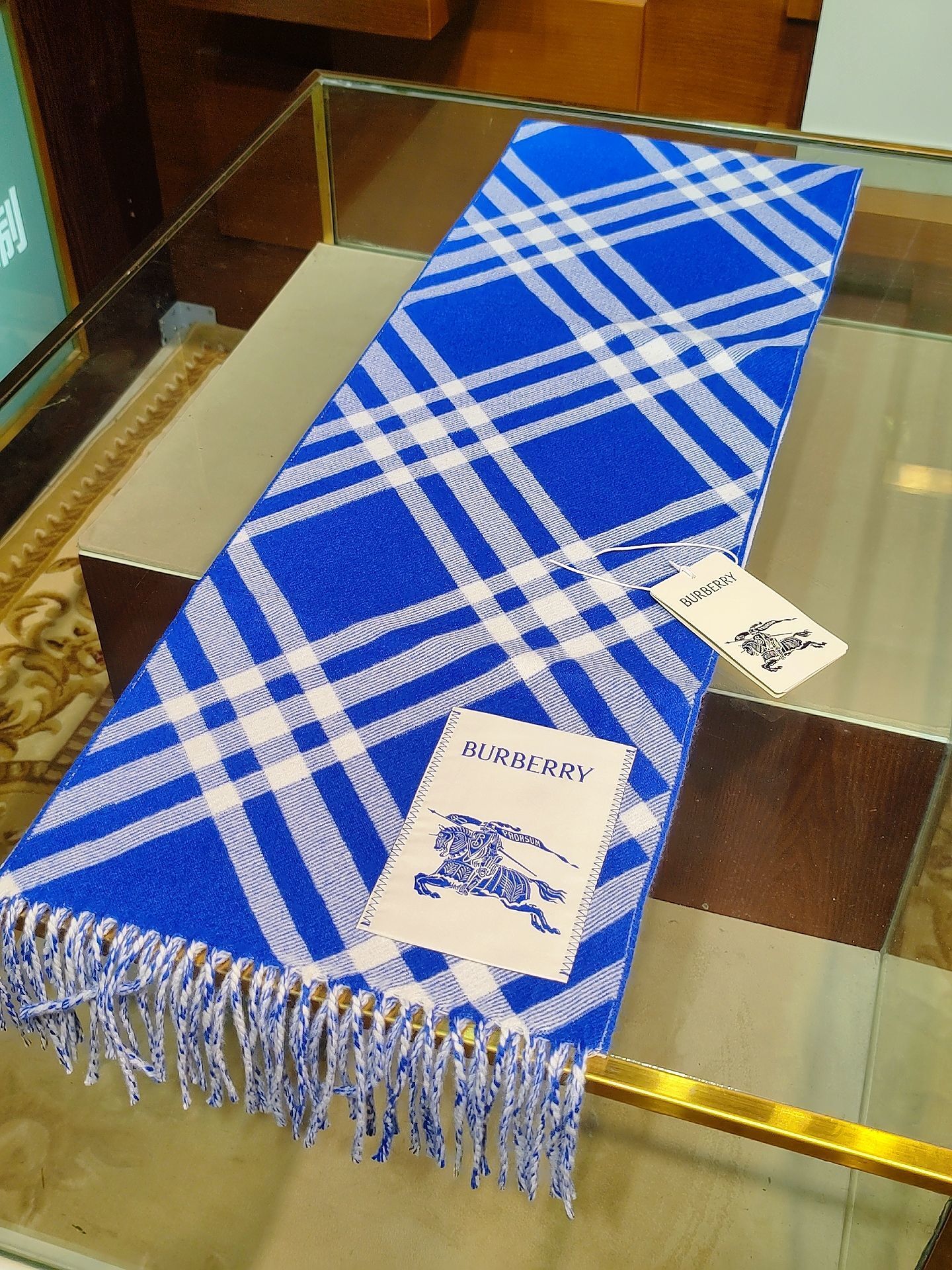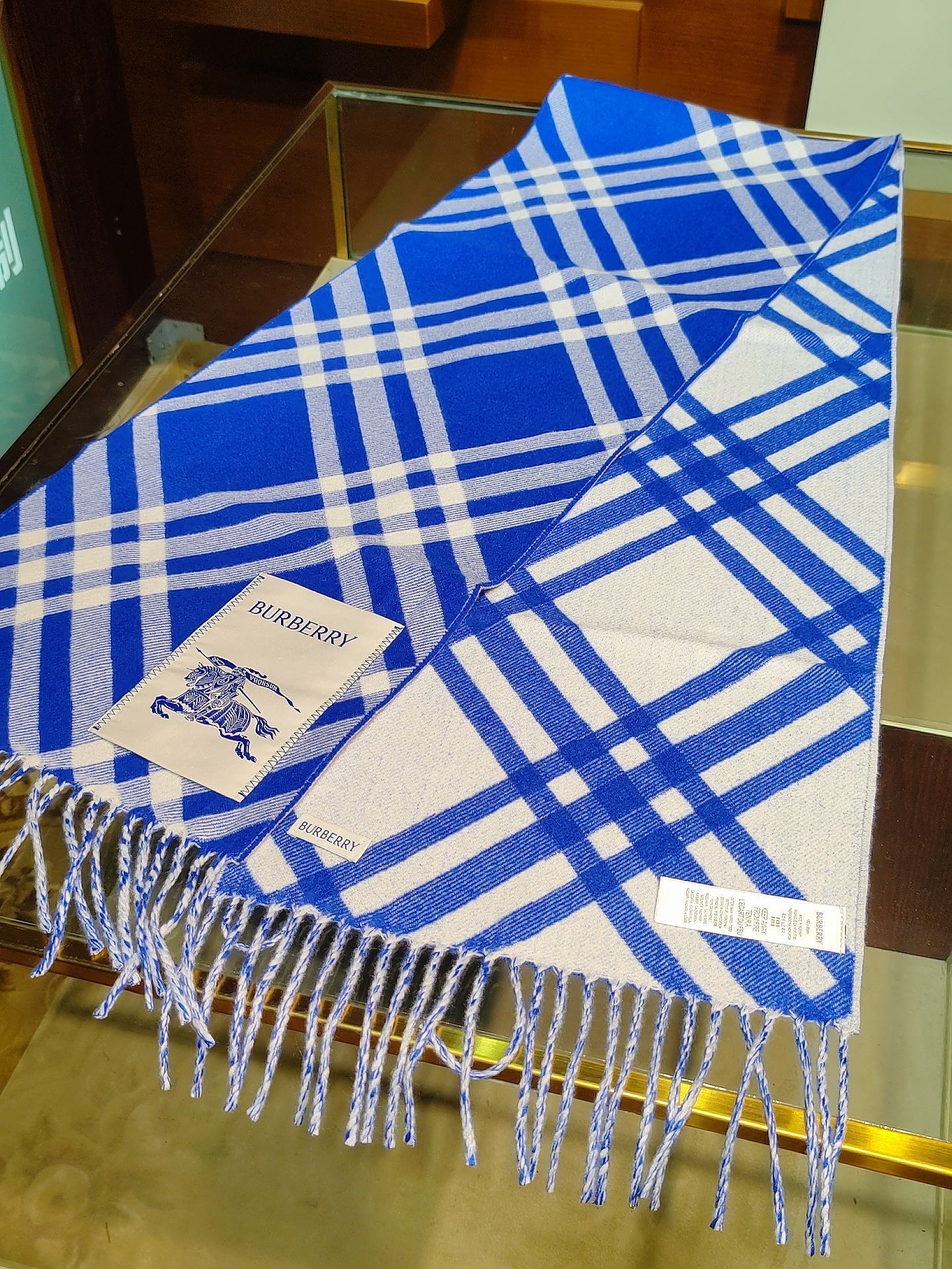 Here are some common questions about the Burberry Blue Check Cashmere Scarf: