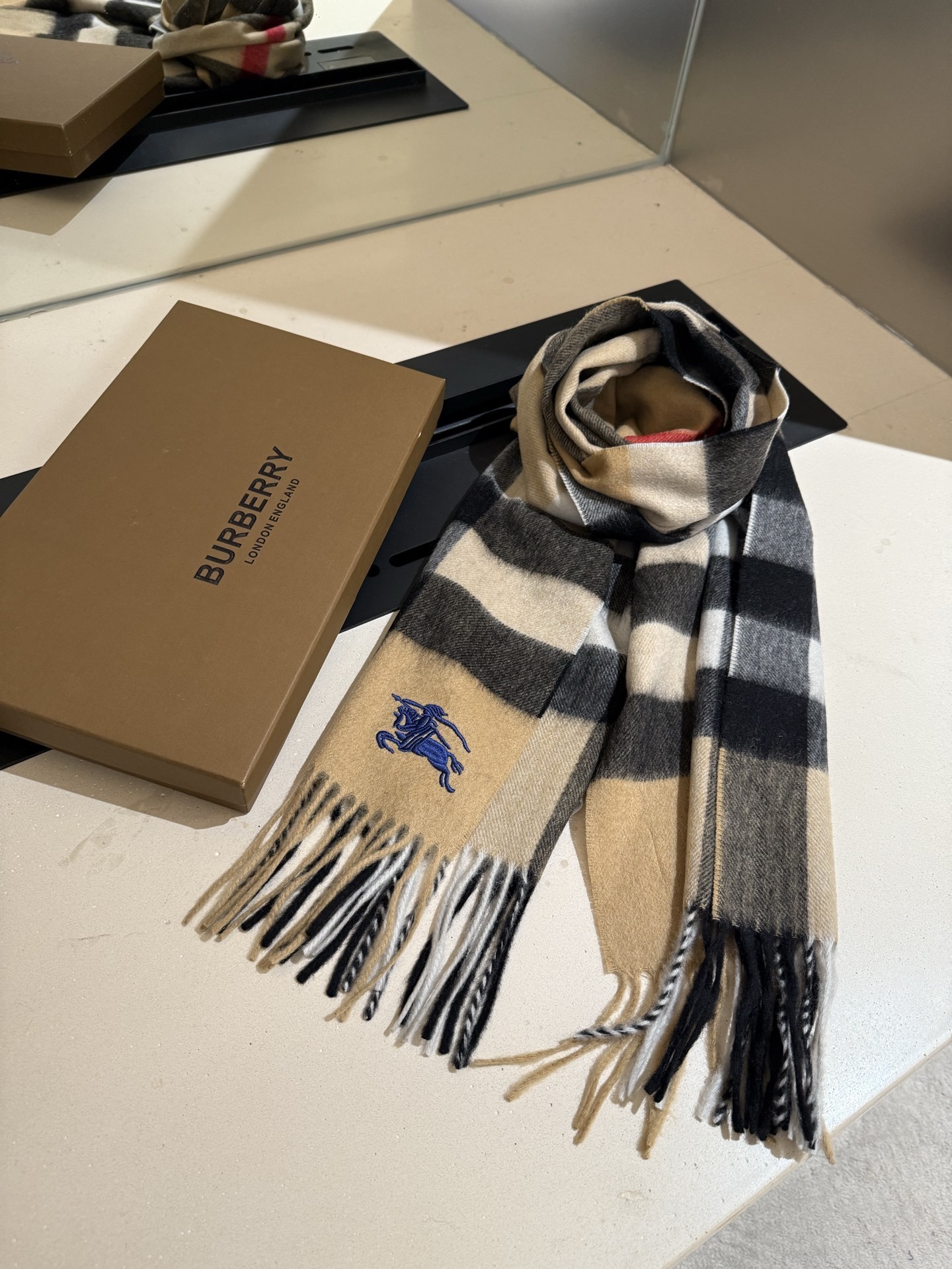 Store your Burberry Camel Check Cashmere Scarf in a clean, dry place, away from direct sunlight. Consider using a breathable storage bag to protect it from dust and moths. Avoid overcrowding your closet to prevent the scarf from being crushed or wrinkled. With proper care, your Burberry Camel Check Cashmere Scarf will remain a cherished accessory for years to come.
