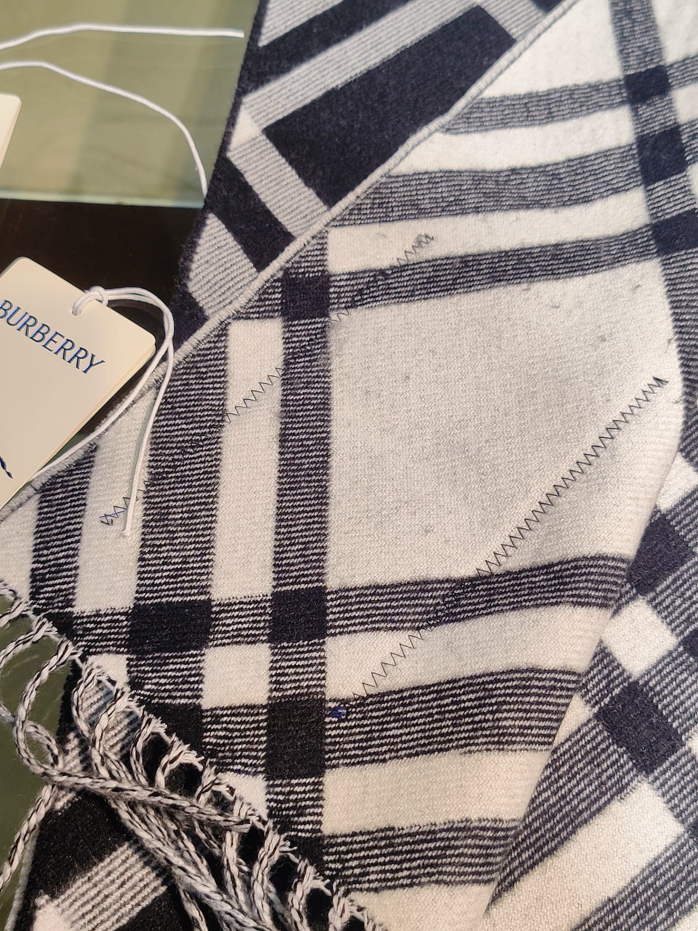 - Burberry Navy White Check Scarf Features