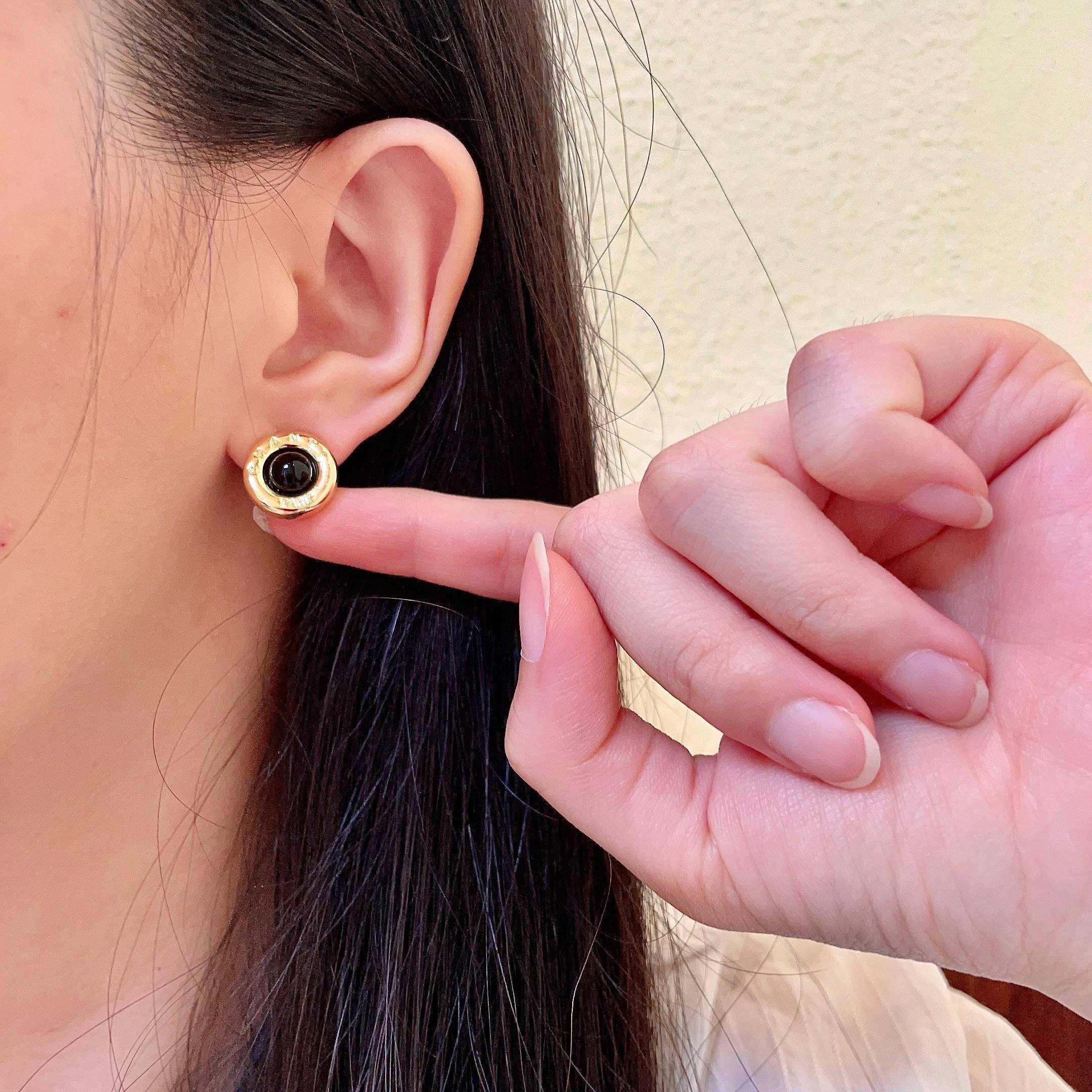 Introducing Bvlgari Gold Black Onyx Stud Earrings