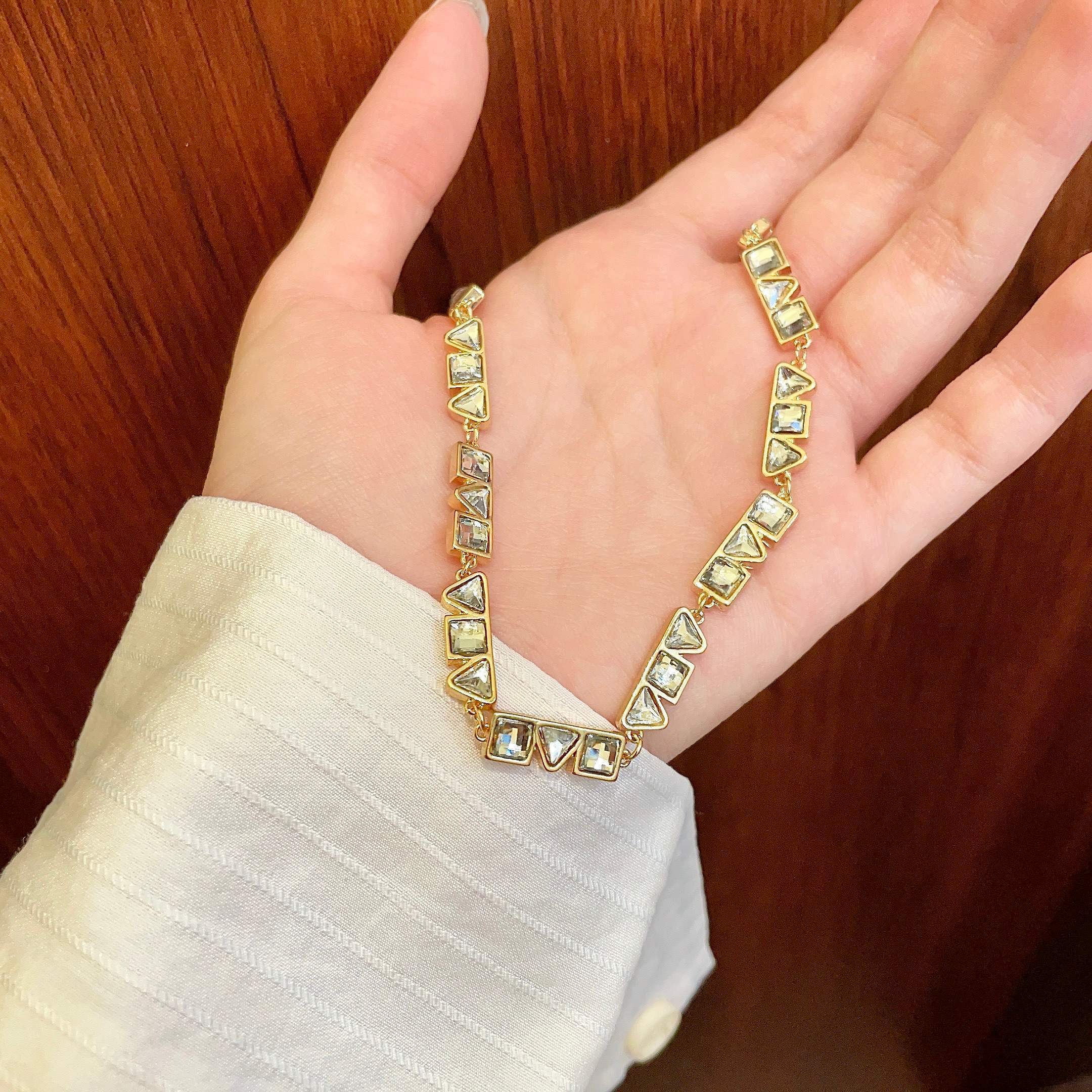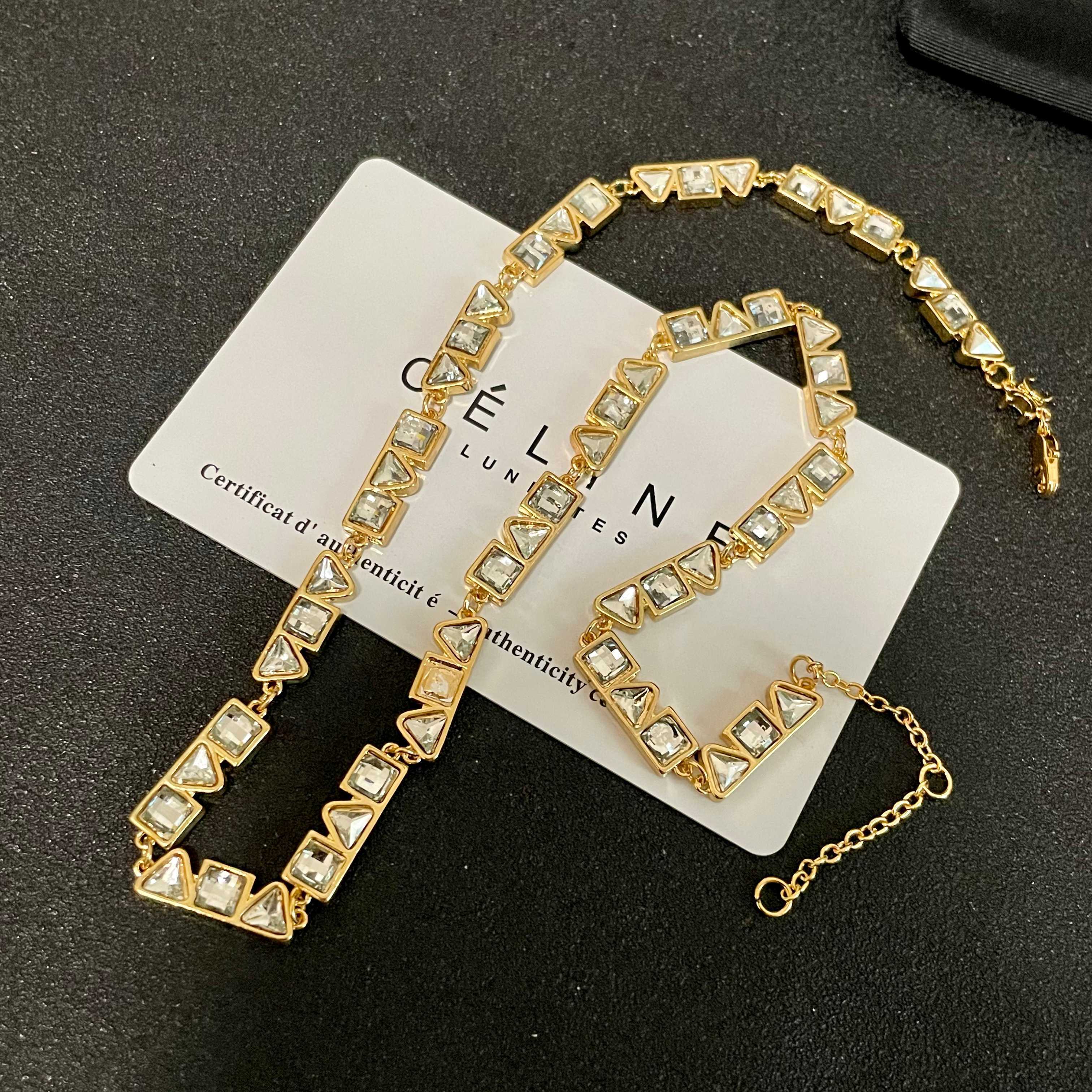 - Distinctive Features of the Celine Gold Crystal Square Necklace & Bracelet Set