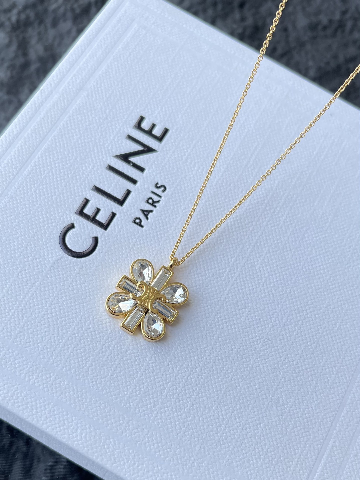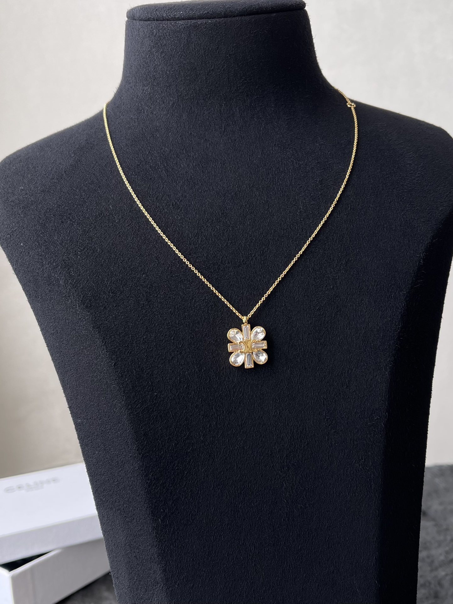 The Celine Gold Flower Pendant Necklace is meticulously crafted with attention to detail. The gold chain is made of high-quality materials, ensuring durability and longevity. The flower pendant is intricately designed with sparkling crystals that catch the light, creating a dazzling effect. The necklace also features an adjustable clasp, allowing you to customize the length to suit your preference. The combination of gold and crystals creates a luxurious and eye-catching piece that is sure to turn heads. The Celine Gold Flower Pendant Necklace is designed to be comfortable to wear and easy to maintain, making it a practical and stylish accessory. The necklace is also hypoallergenic, making it suitable for individuals with sensitive skin. For more information about the history of necklaces, you can visit necklace information on Wikipedia.