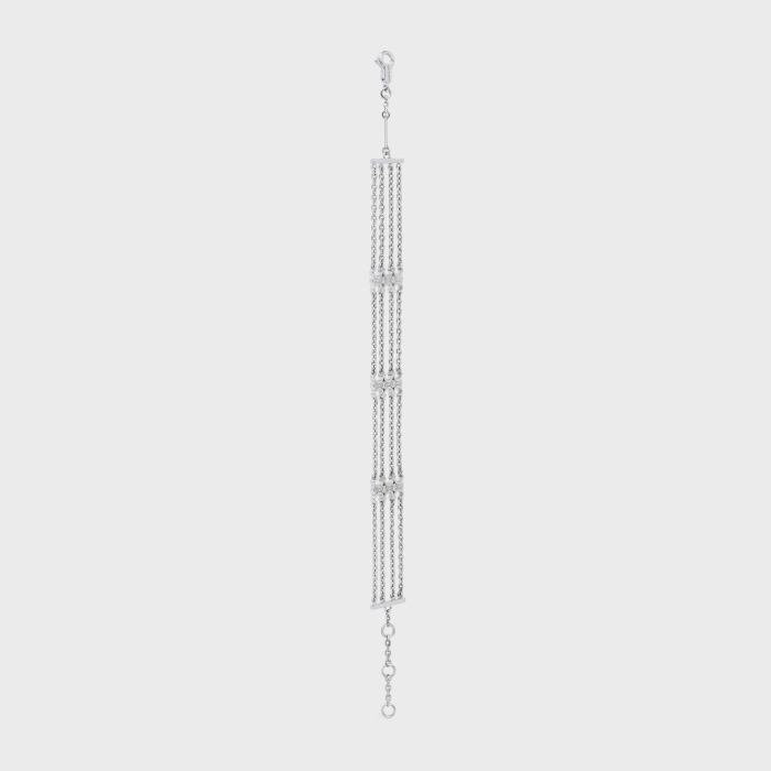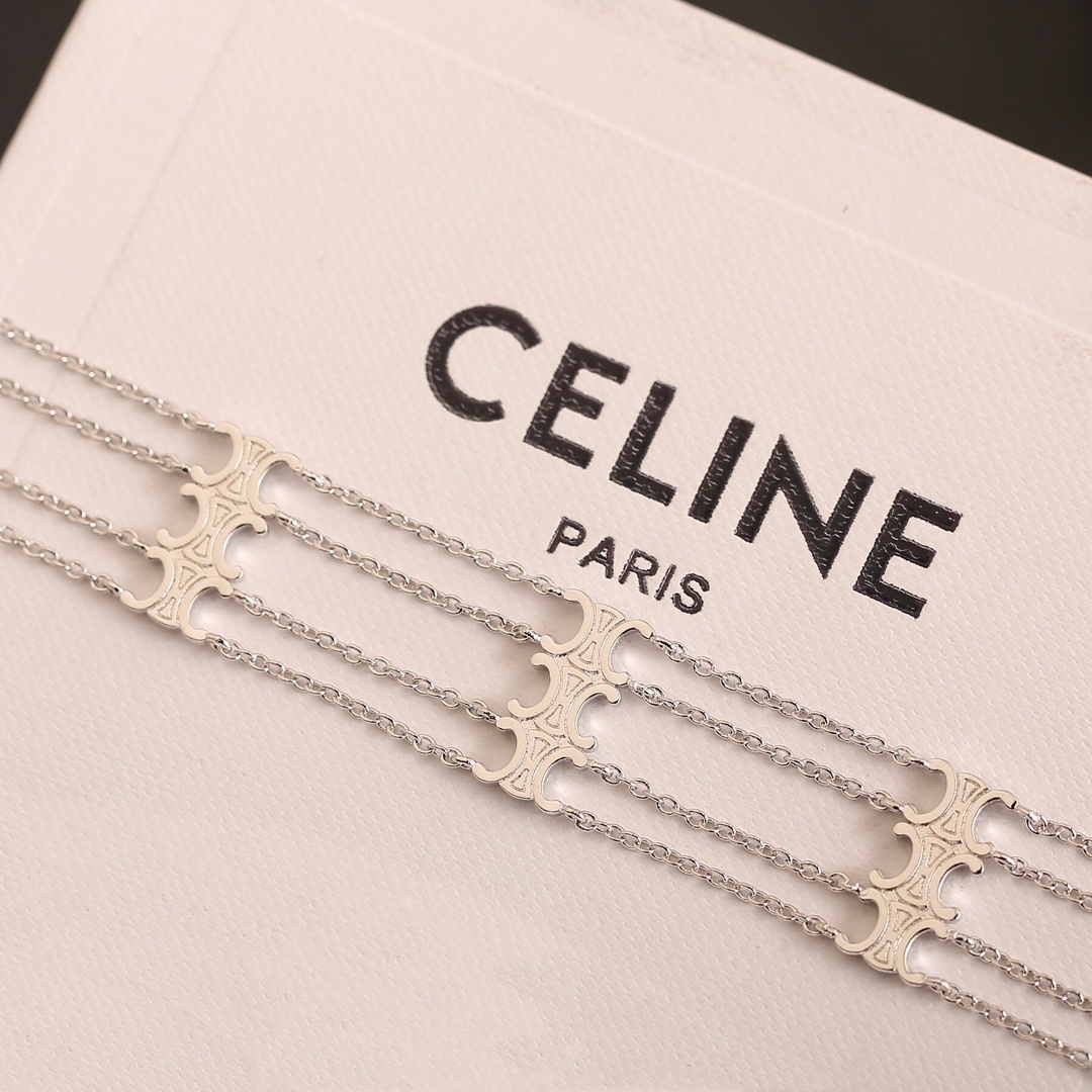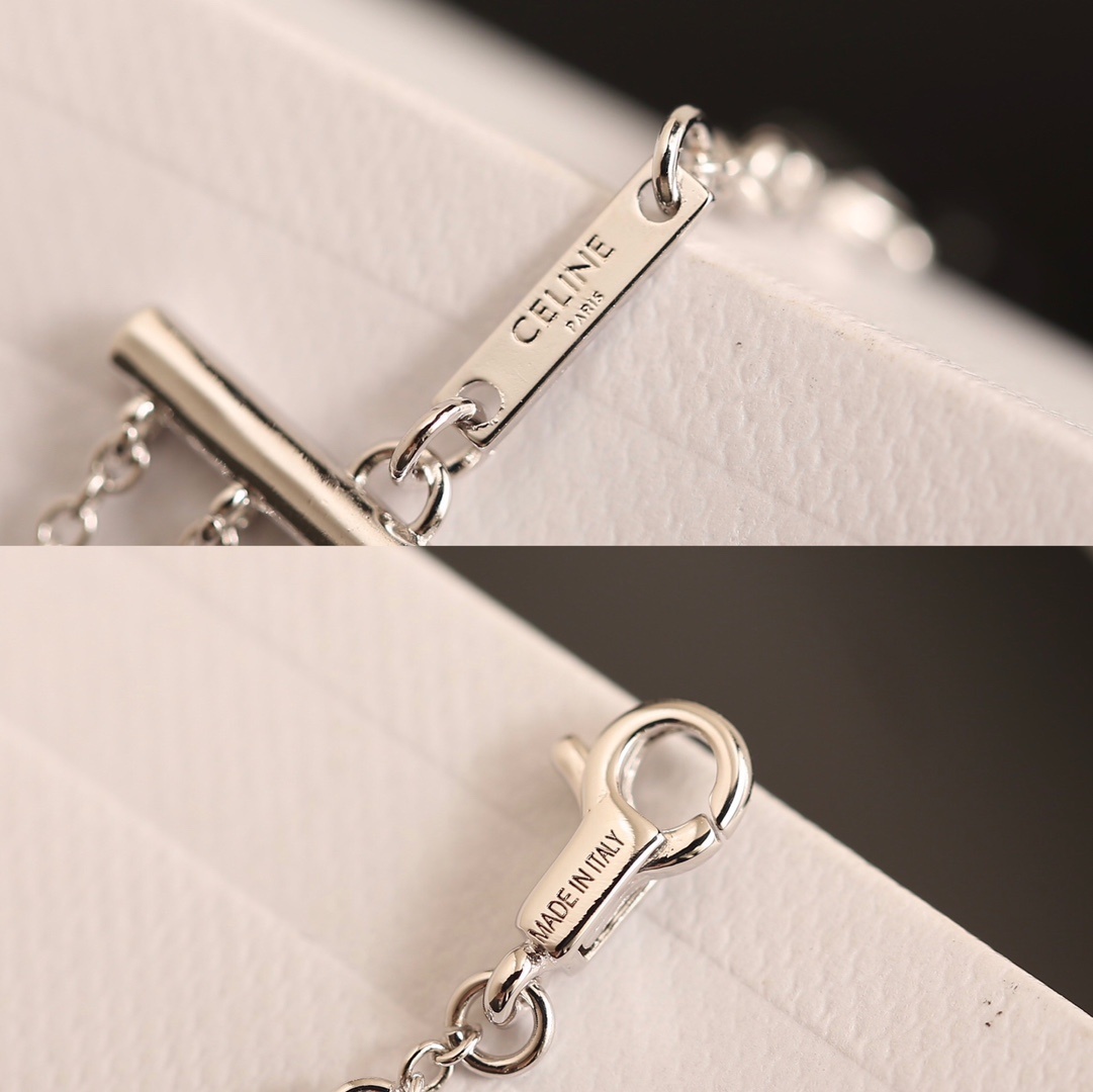 Meticulously crafted with high-quality materials, this bracelet showcases a delicate chain design adorned with the iconic Celine-inspired motif. The shimmering silver finish adds a touch of understated glamour, ensuring you stand out with effortless style.