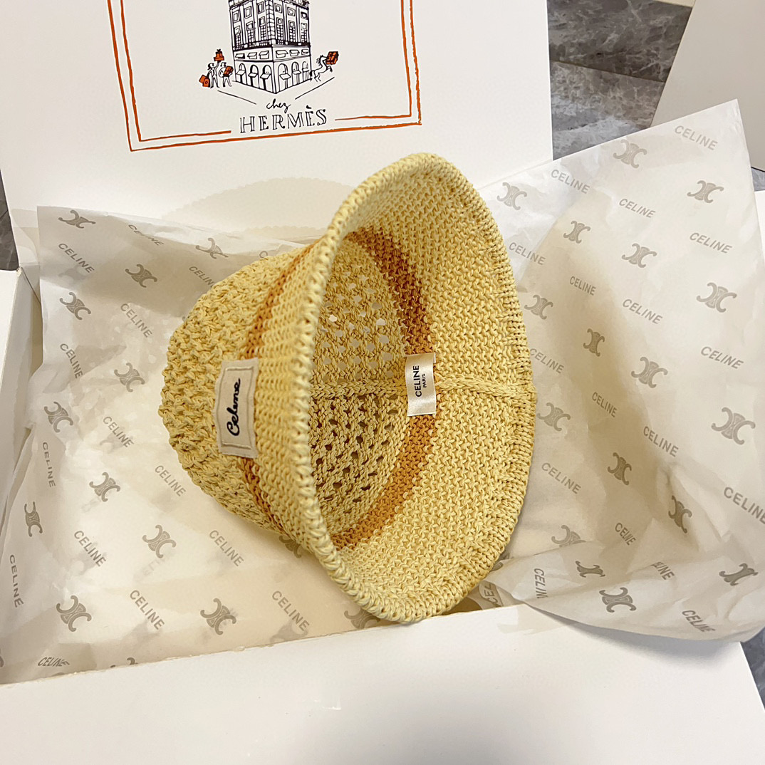 A: The Celine Natural Raffia Bucket Hat is crafted from high-quality natural raffia, a durable and breathable material that is perfect for summer wear.