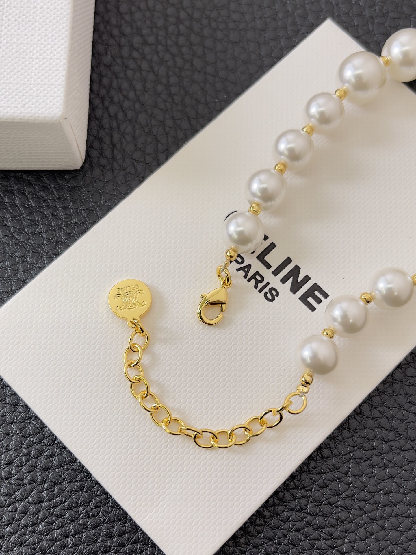 Whether you're attending a formal event, enjoying a casual outing, or simply want to add a touch of sophistication to your everyday look, the Celine Pearl Bracelet is the perfect choice. Its versatile design complements any style, making it a must-have addition to your jewelry collection.