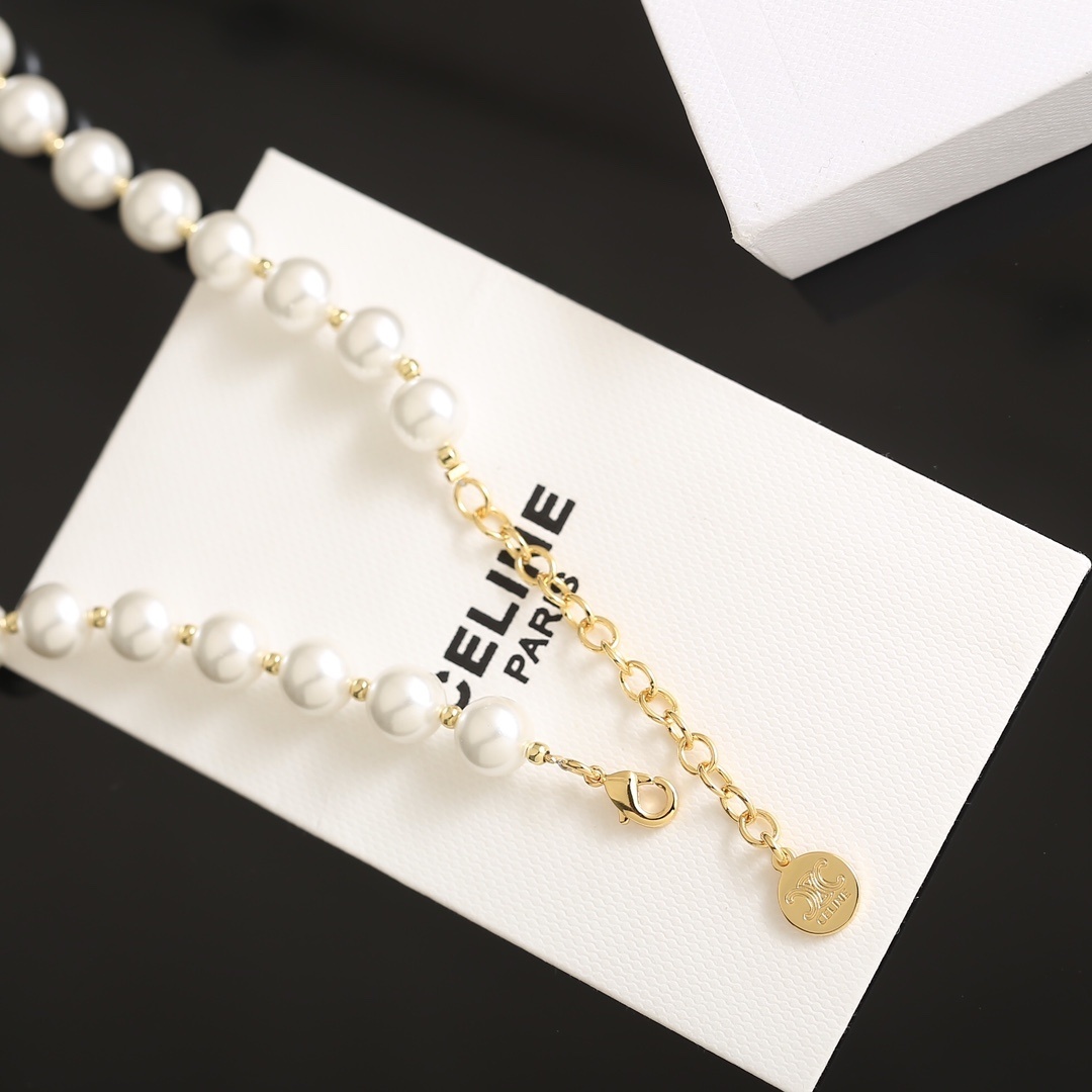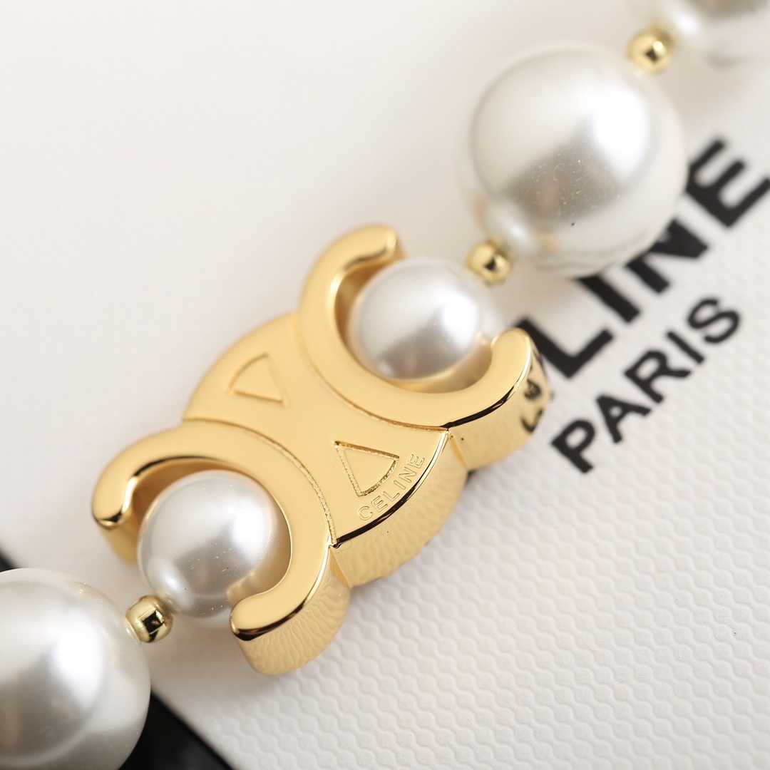 The necklace's versatility makes it a valuable addition to any wardrobe. It can be dressed up or down, making it suitable for a wide range of occasions. Its elegant design will complement any outfit, adding a touch of sophistication and style. In short, the Celine Pearl Necklace Gold Clasp is a must-have accessory for any woman who appreciates timeless elegance.