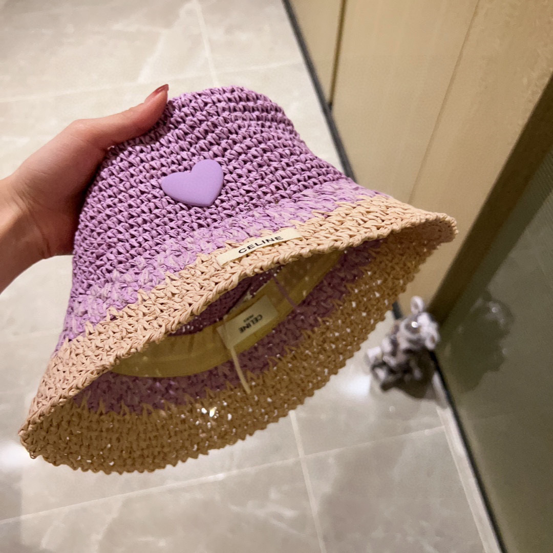 The Celine Purple Crochet Bucket Hat boasts a range of features that set it apart from ordinary headwear. The hat is meticulously crafted from high-quality crochet material, providing excellent breathability and comfort, even on the hottest days. The unique two-tone design, transitioning from a natural beige brim to a vibrant purple body, offers a visually appealing contrast that catches the eye. This careful attention to detail ensures that the hat not only looks stunning but also feels fantastic to wear.