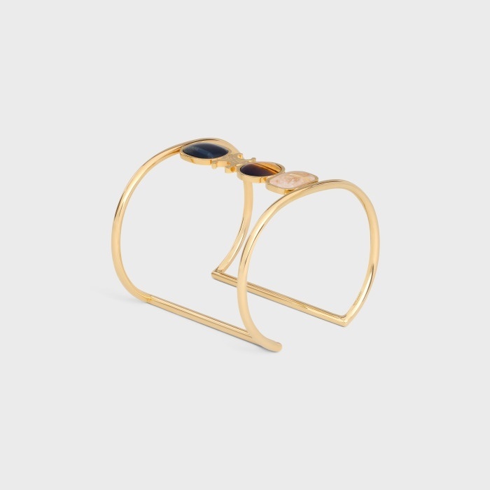 Q: What materials is the Celine Triomphe Stone Gold Bangle made of?