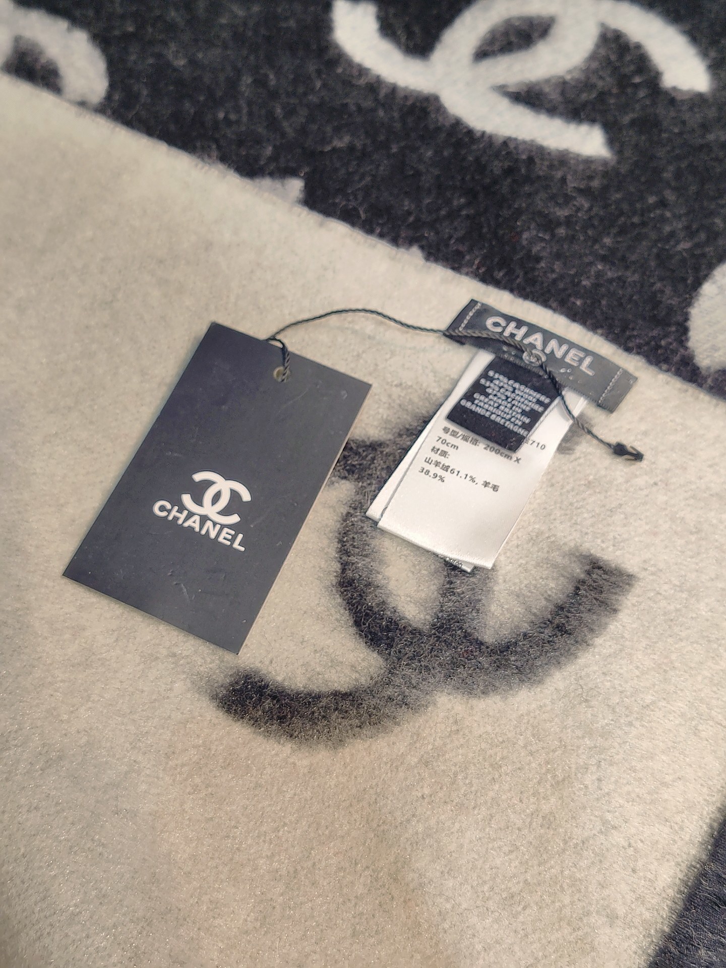 Key Features of the Chanel Bi-Color CC Logo Scarf