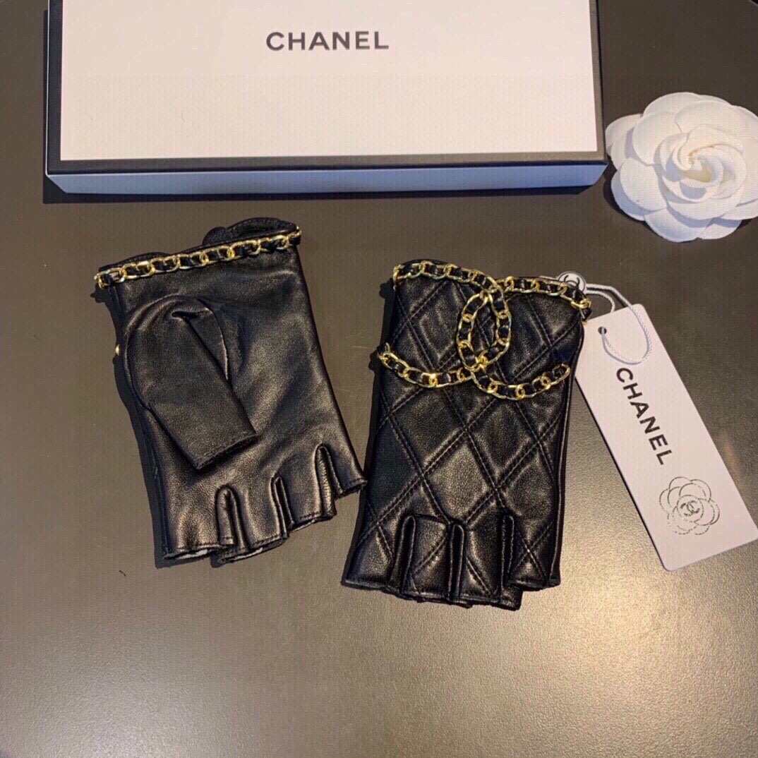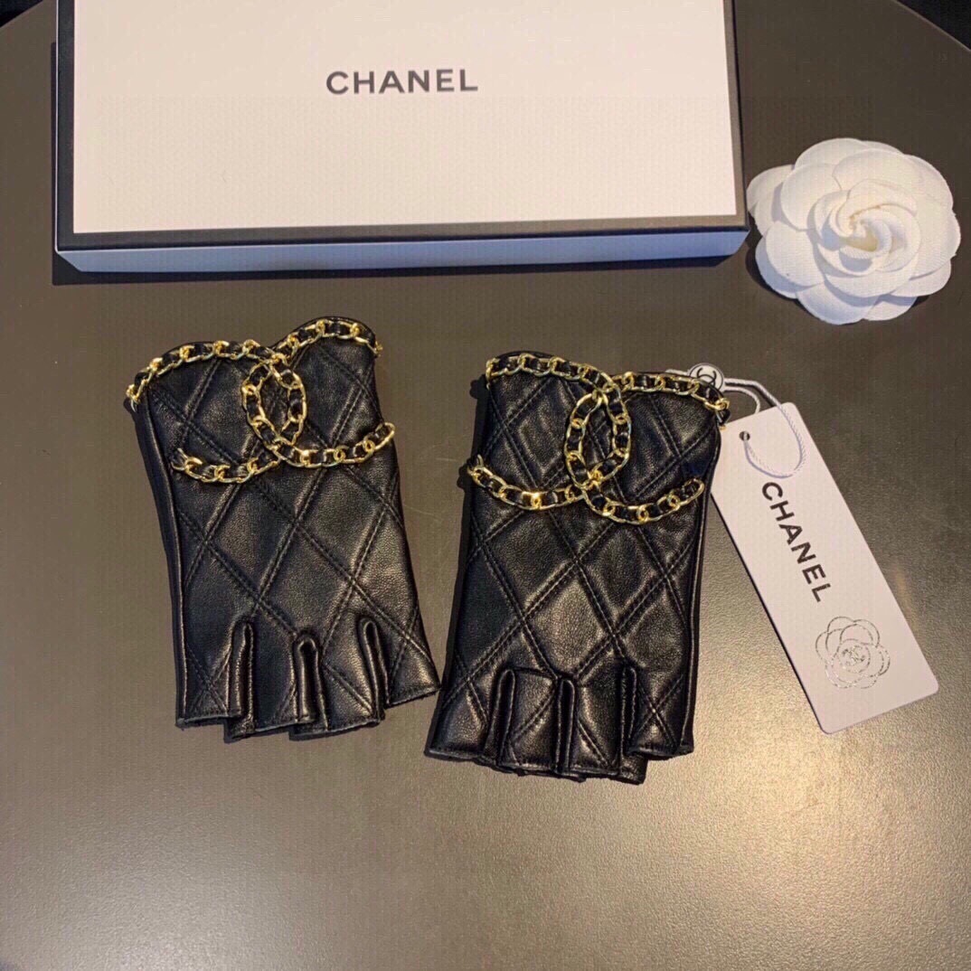 - Introducing Chanel Black Leather Chain Fingerless Gloves