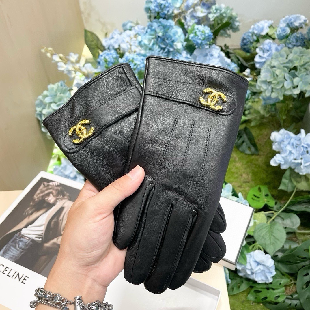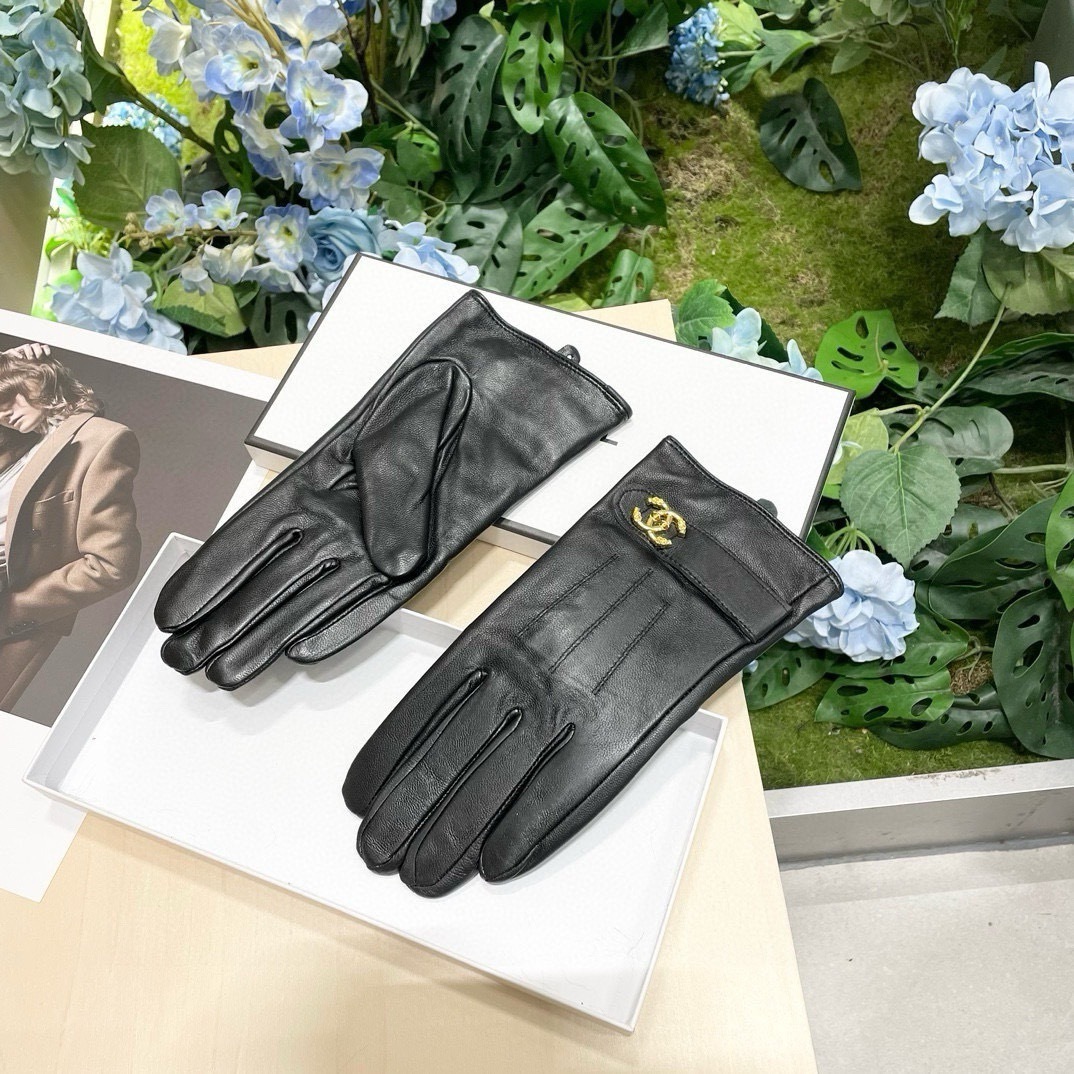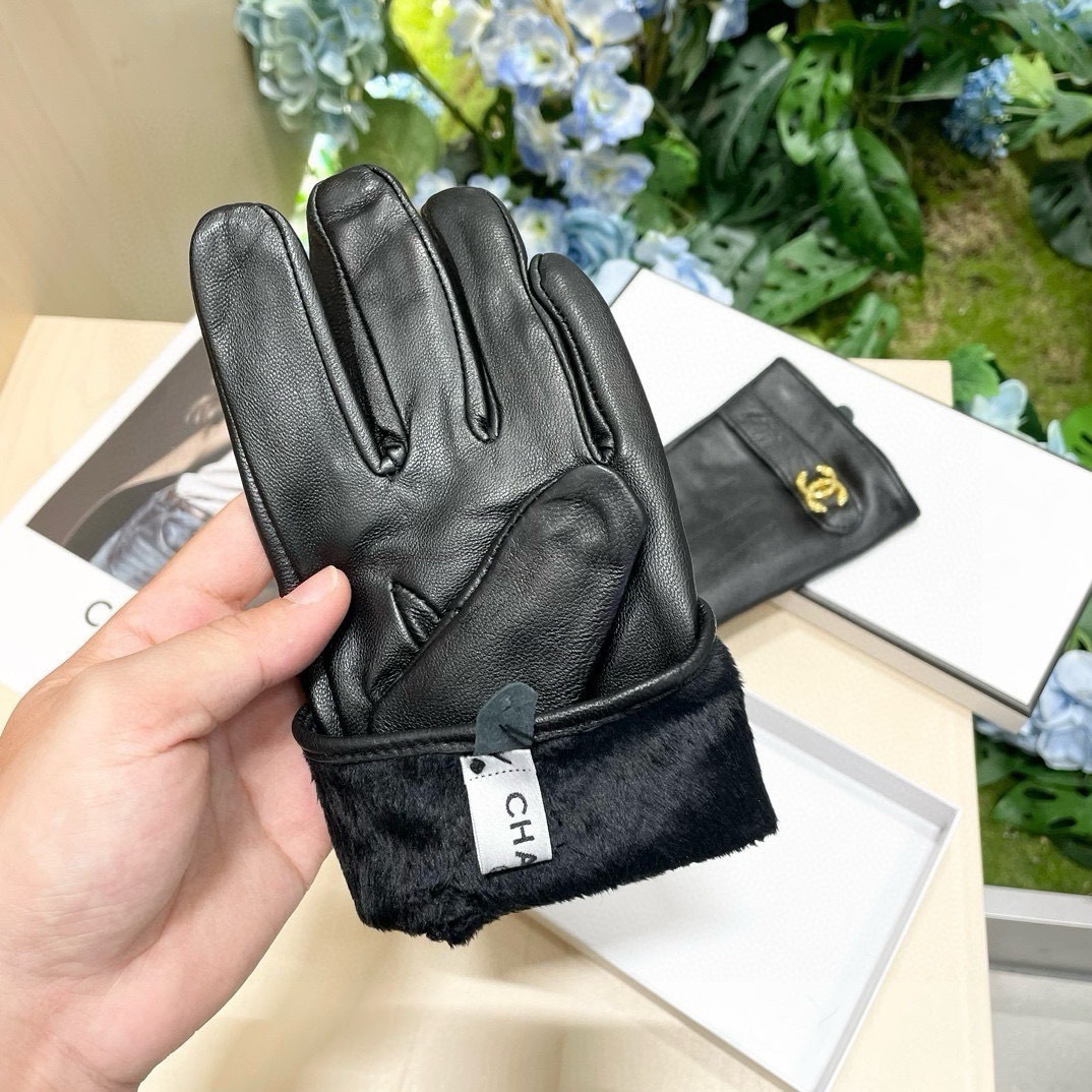 - Introducing the Chanel Black Leather Gloves with Gold Logo