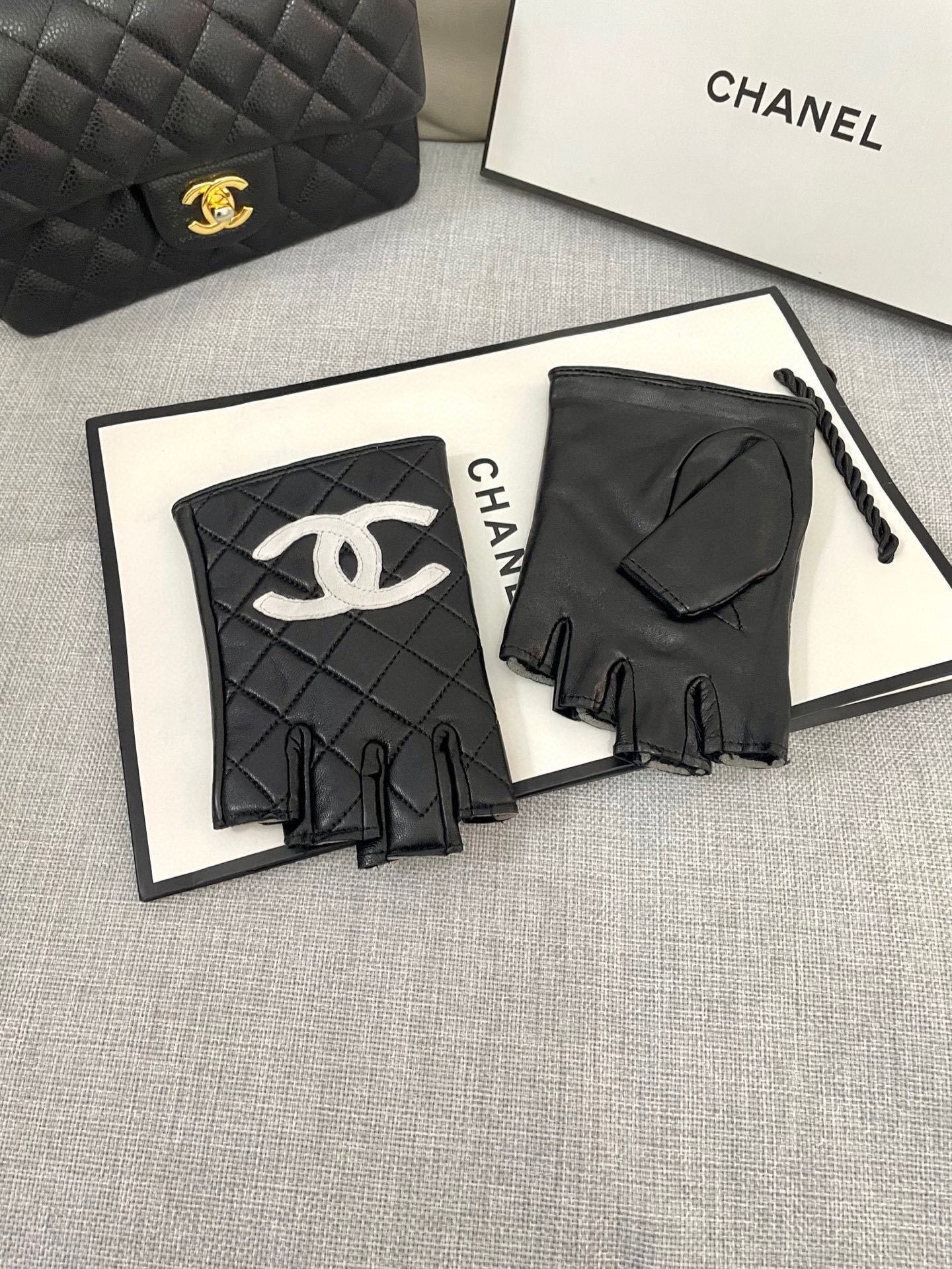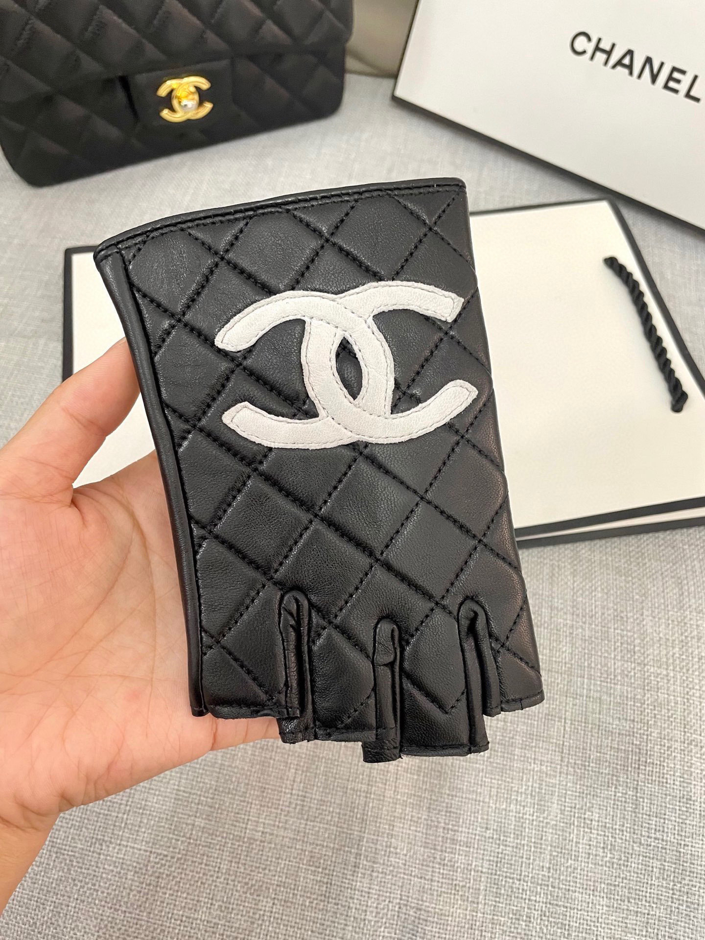 - Introducing the Chanel Black Quilted Leather Fingerless Gloves