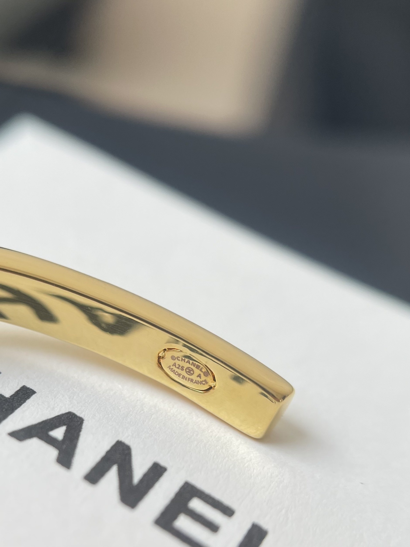 To maintain the brilliance of your Chanel Bow Bracelet, avoid contact with harsh chemicals and store it in a dry, safe place when not in use. Gently clean with a soft cloth to remove any dirt or residue.