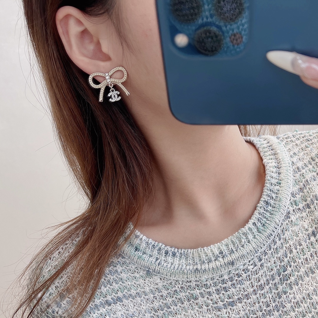 Chanel Bow Earrings Rhinestone CC Logo Designer