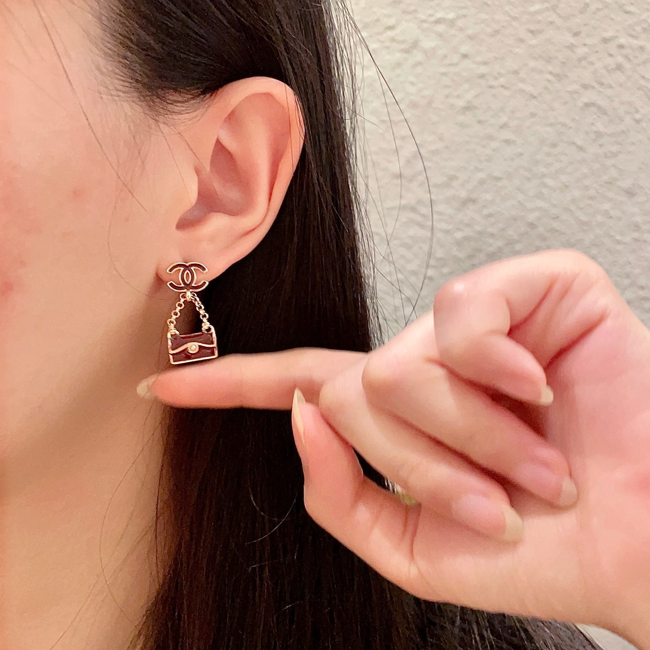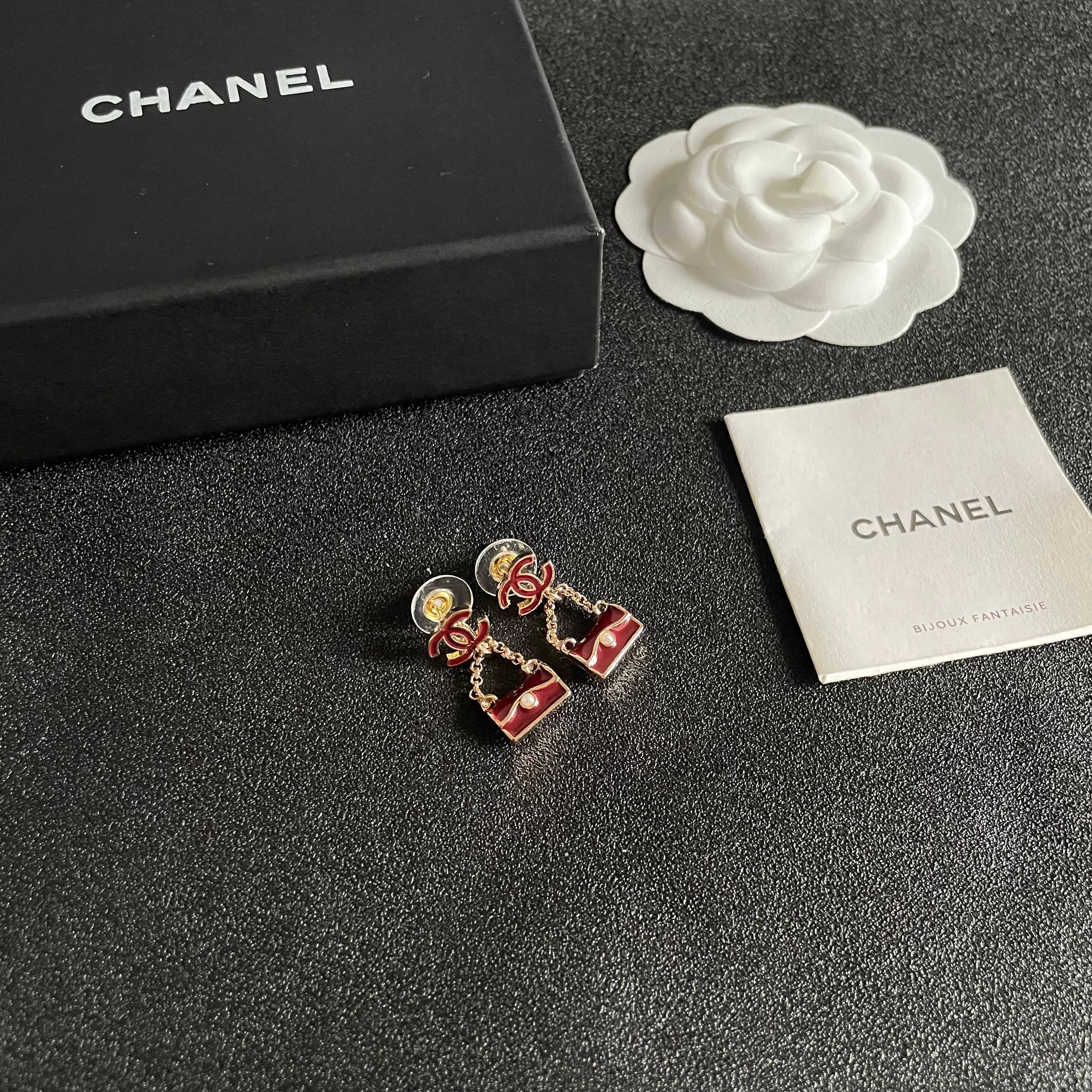 - Introducing the Chanel Burgundy Bag Drop Earrings