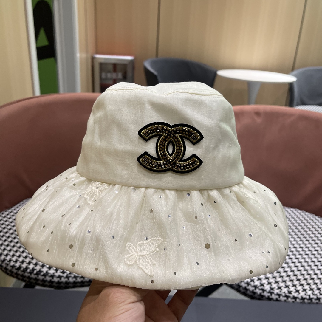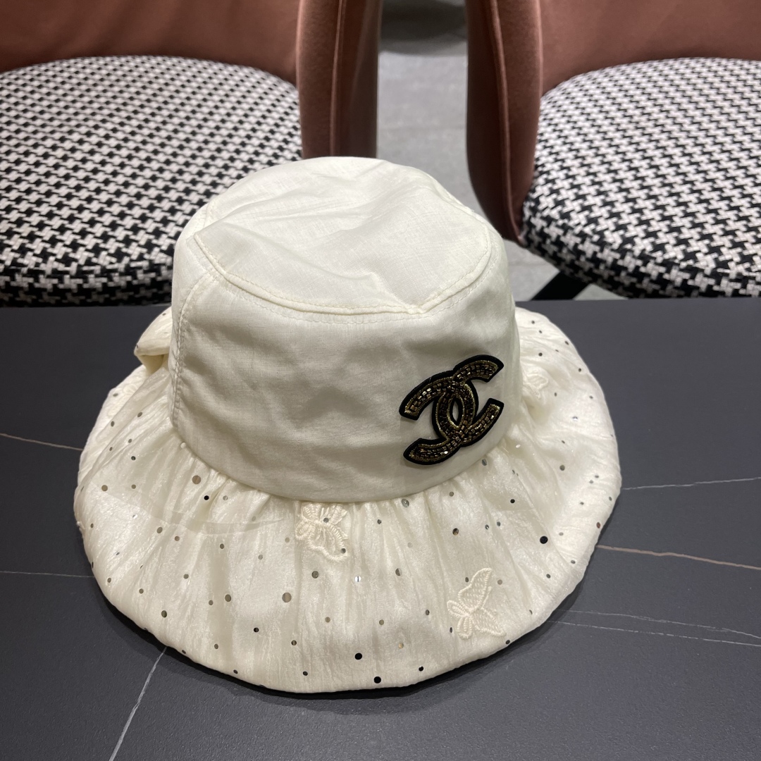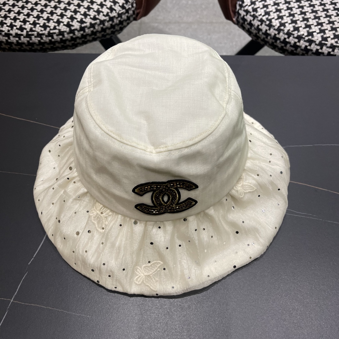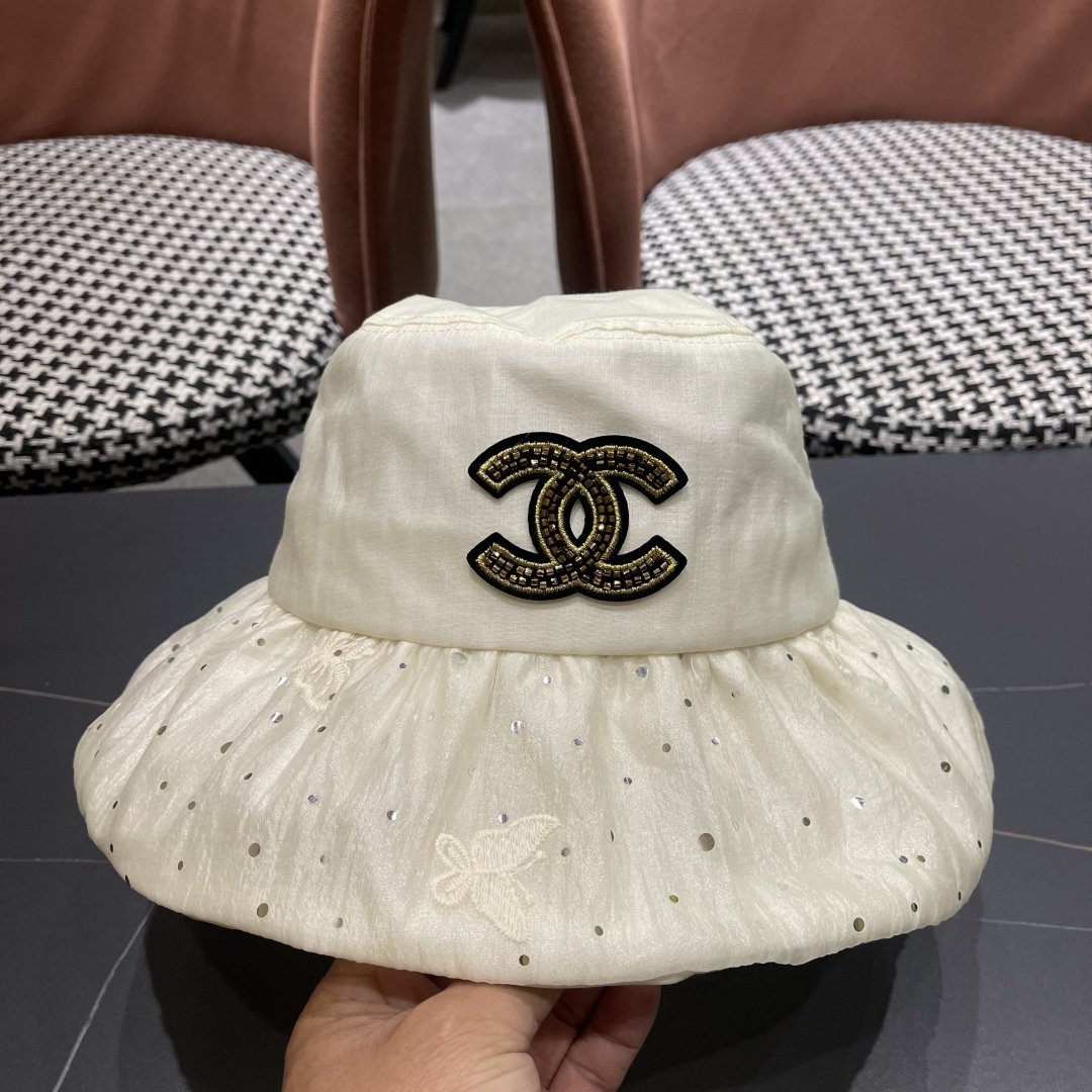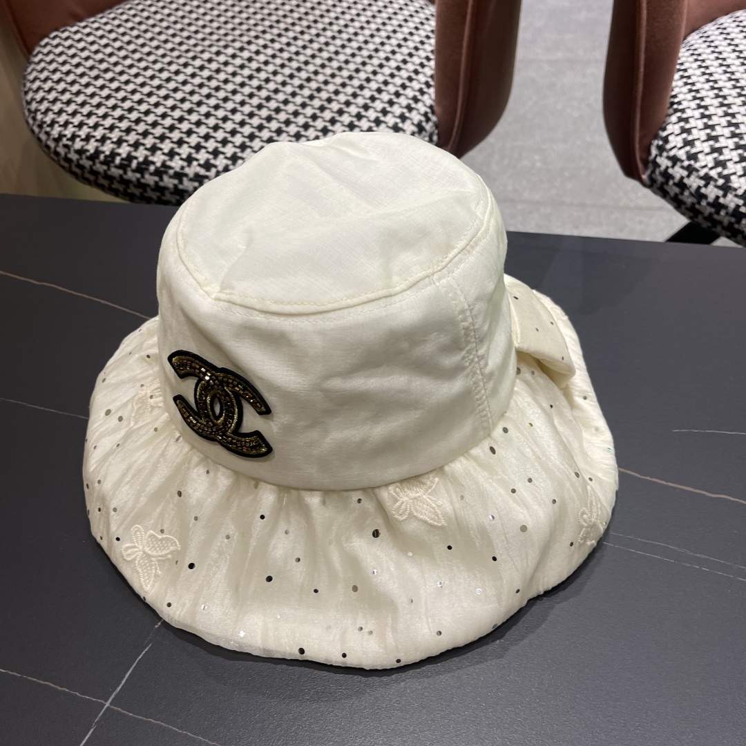 Chanel Cream Sequin Bucket Hat - Embroidered CC Logo