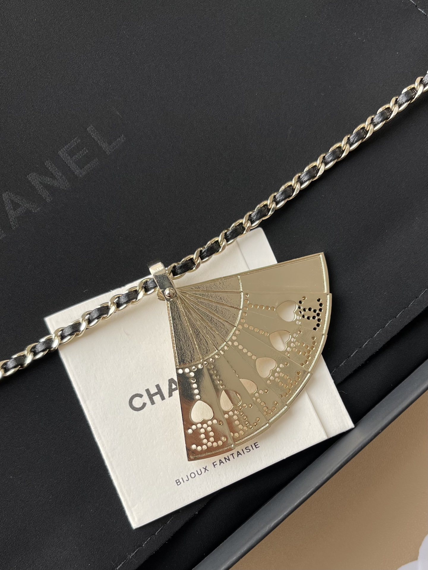 - Introducing the Chanel Gold & Black Fan Pendant Necklace