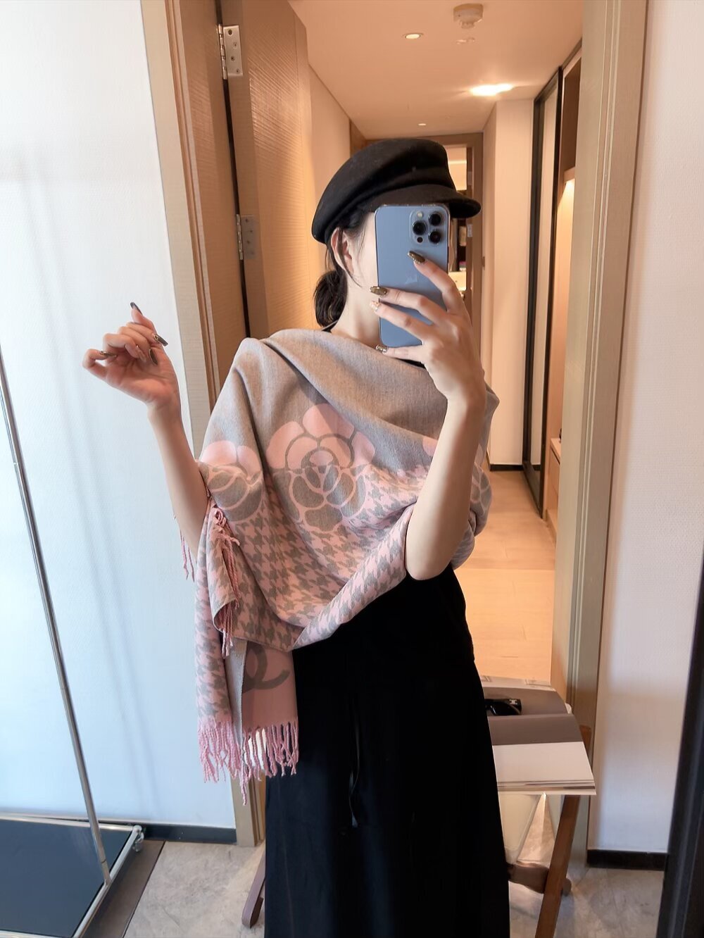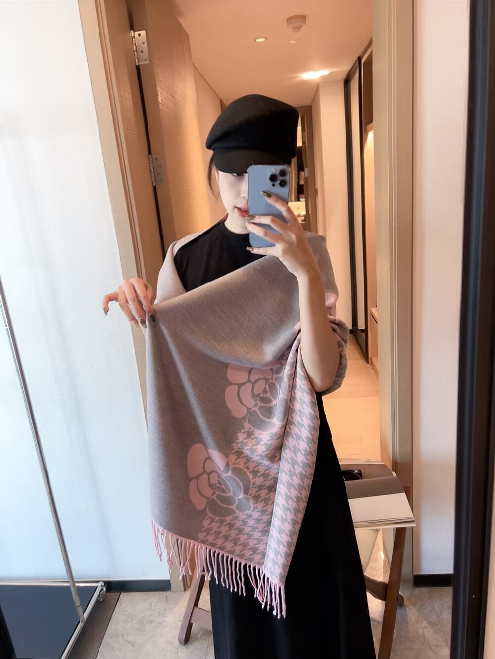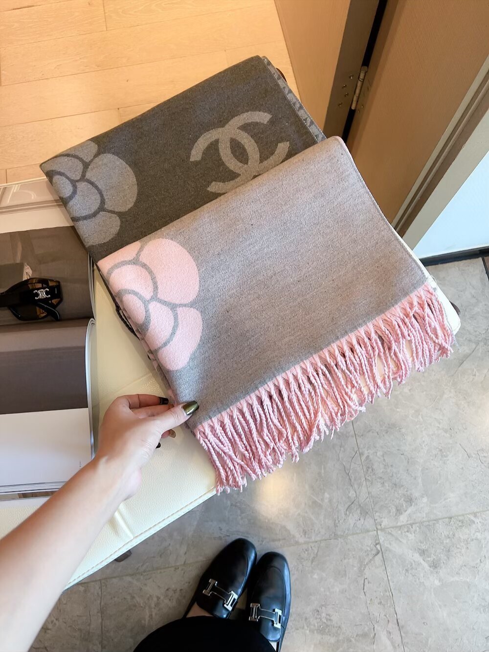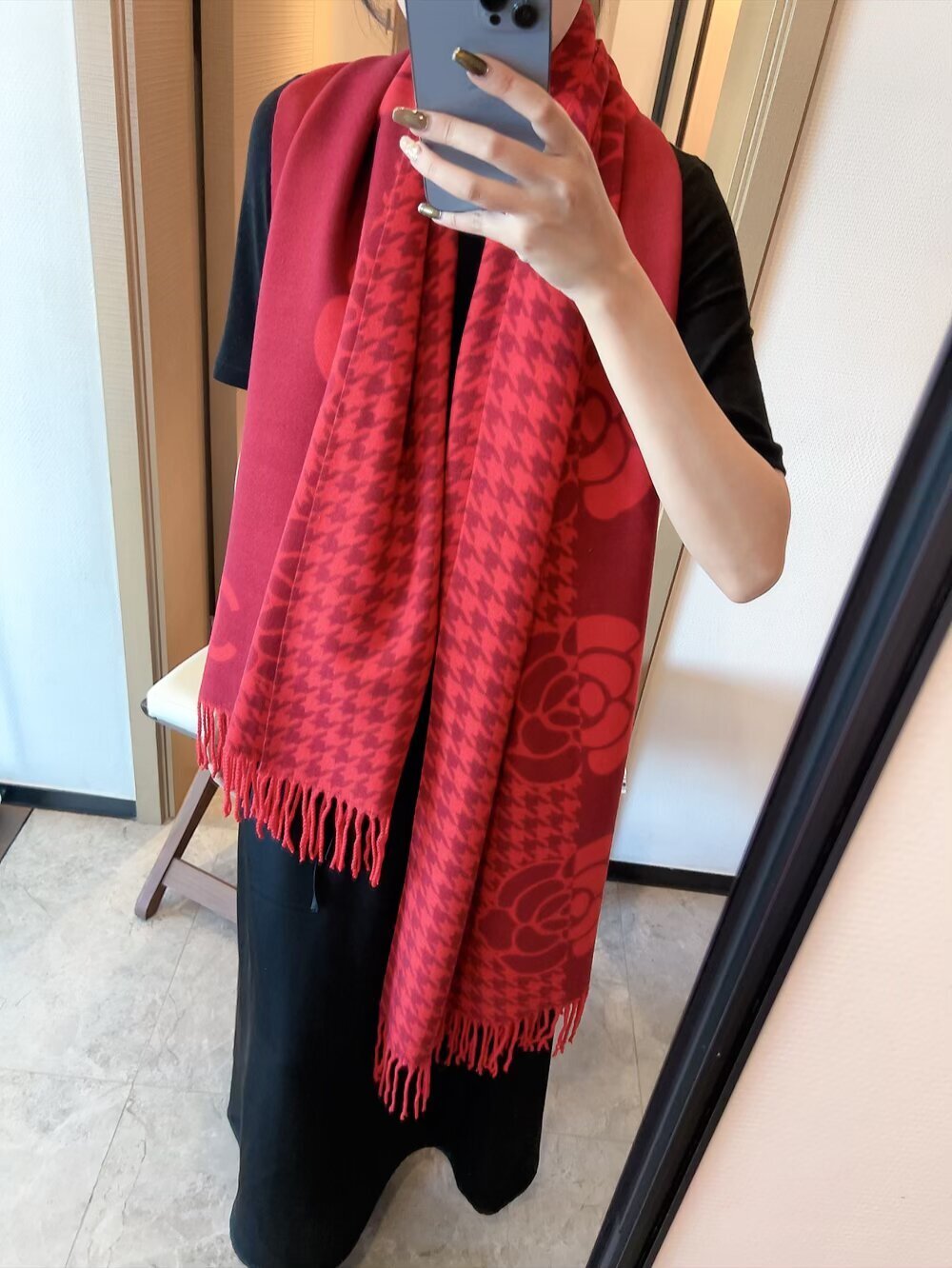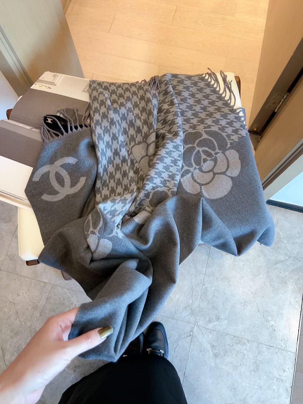 - How to Care for Your Chanel Gray Houndstooth Camellia Scarf