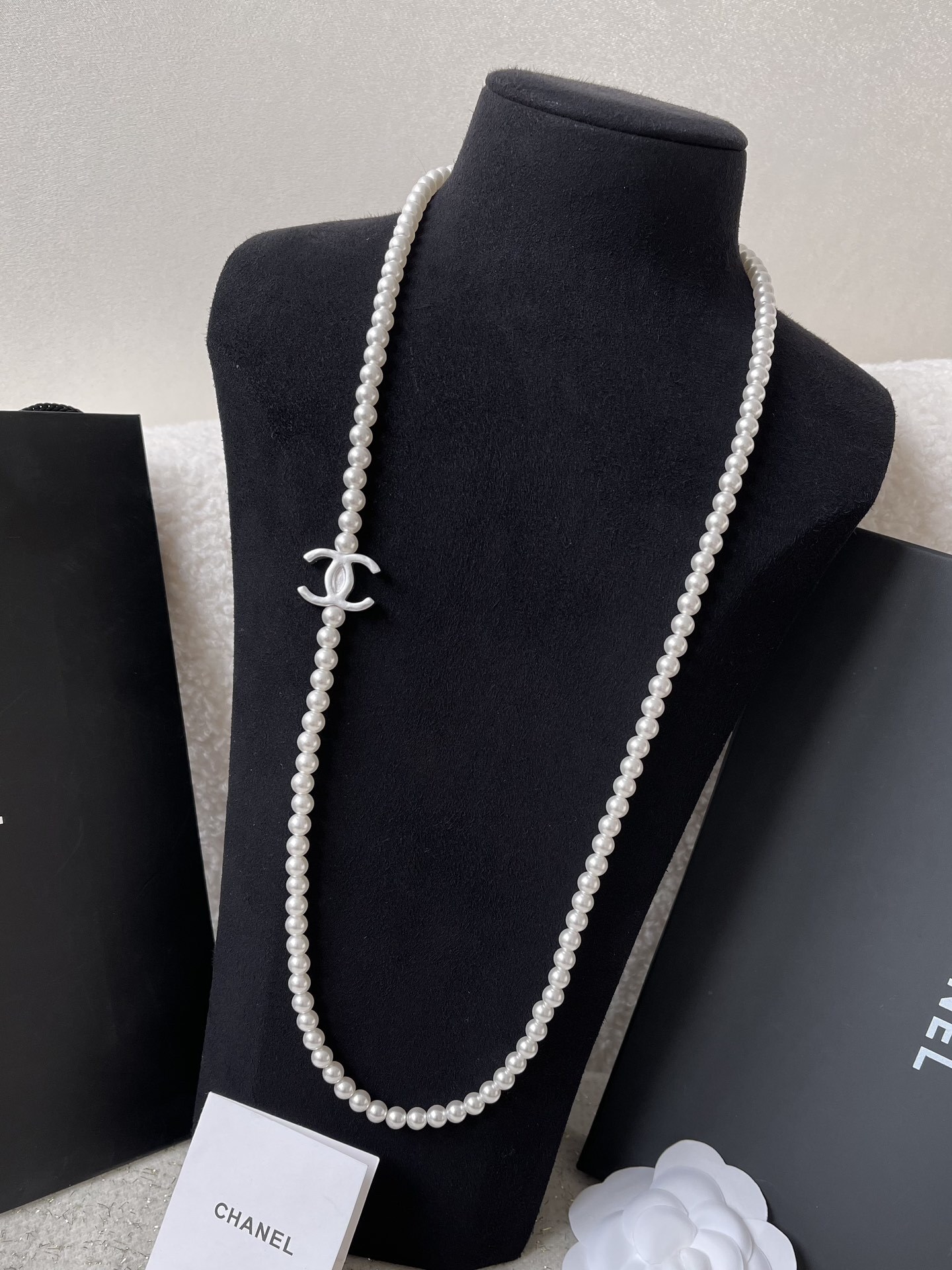 Elevate your style with this timeless piece. Shop the Chanel Long Pearl Necklace now at our store collection!