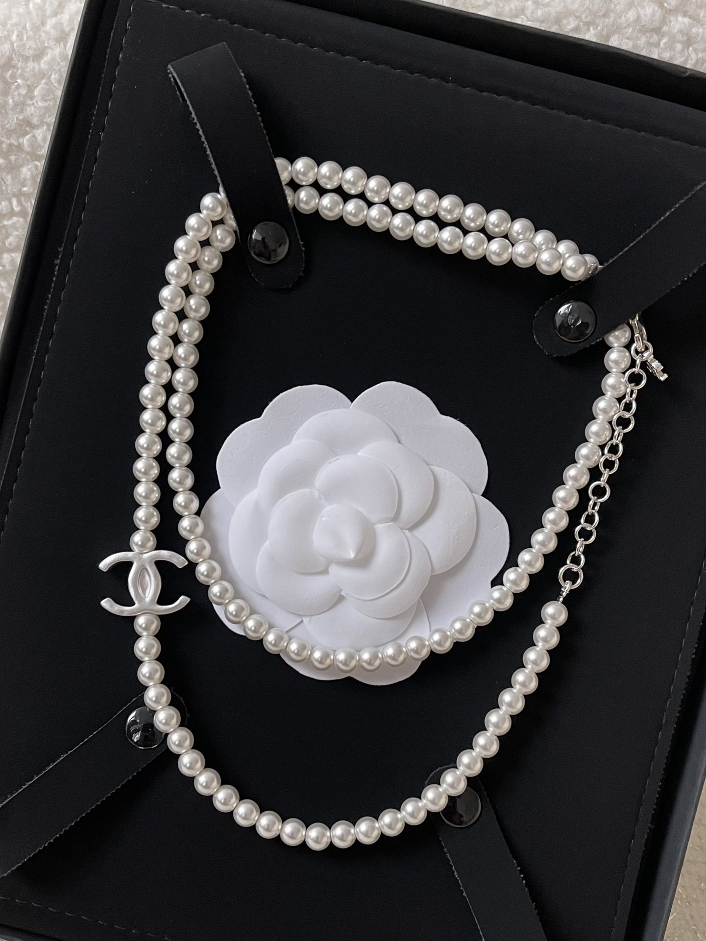 Always remove your necklace before showering, swimming, or exercising to prevent damage from water and sweat. Avoid storing the necklace in direct sunlight or in a humid environment, as this can cause the pearls to discolor. Treat your Chanel Long Pearl Necklace with the respect it deserves, and it will continue to radiate elegance and sophistication.