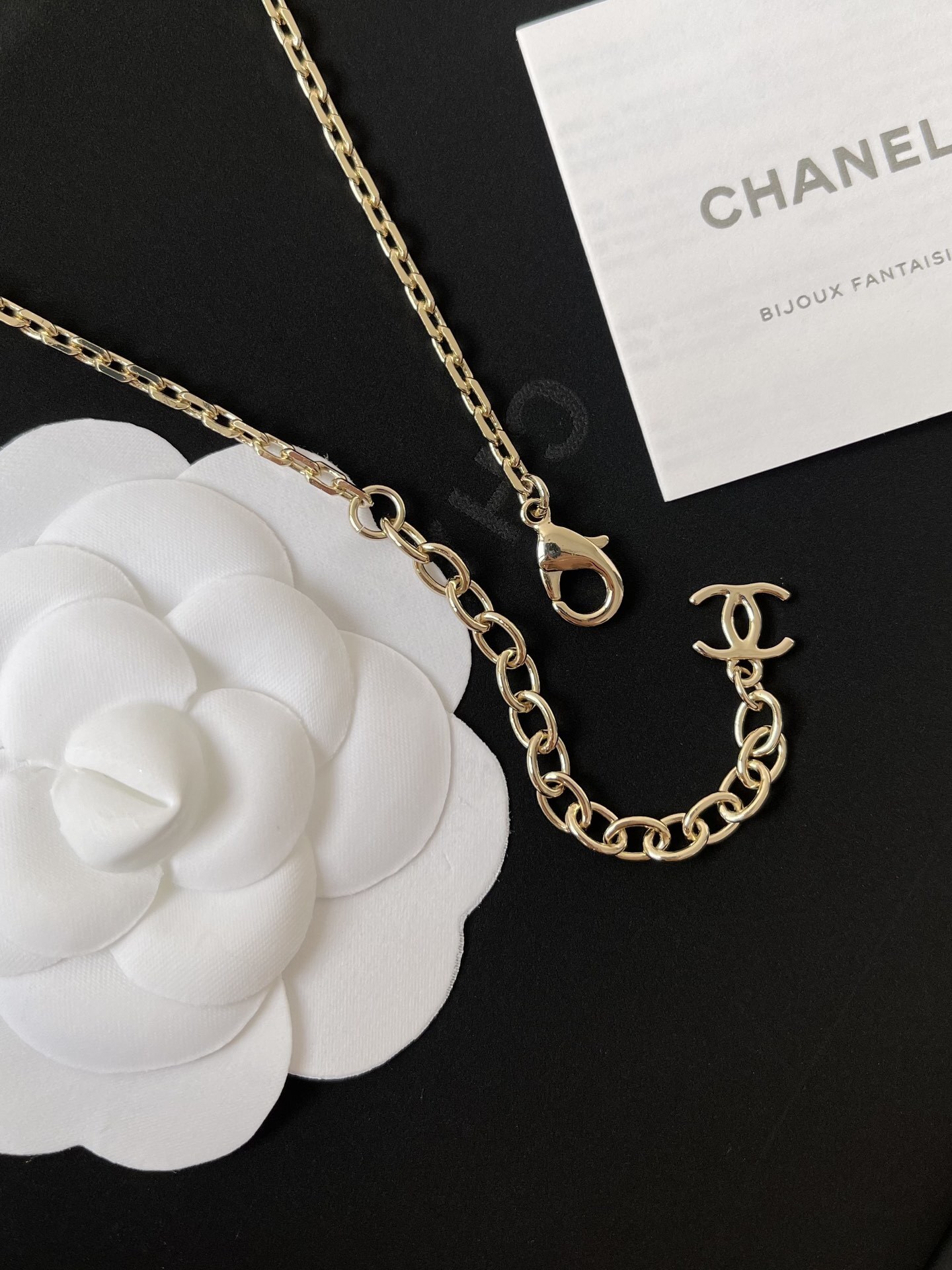The chain of the **Chanel Pearl Crystal Necklace** is made from durable, hypoallergenic material, ensuring comfort and longevity. The clasp is designed for easy use and secure closure, providing peace of mind while wearing the necklace. Whether you're attending a formal event or simply adding a touch of sophistication to your everyday look, this necklace is a versatile accessory that will complement any style. The design is inspired by Coco Chanel's vision of timeless elegance, making it a piece that transcends fleeting trends.