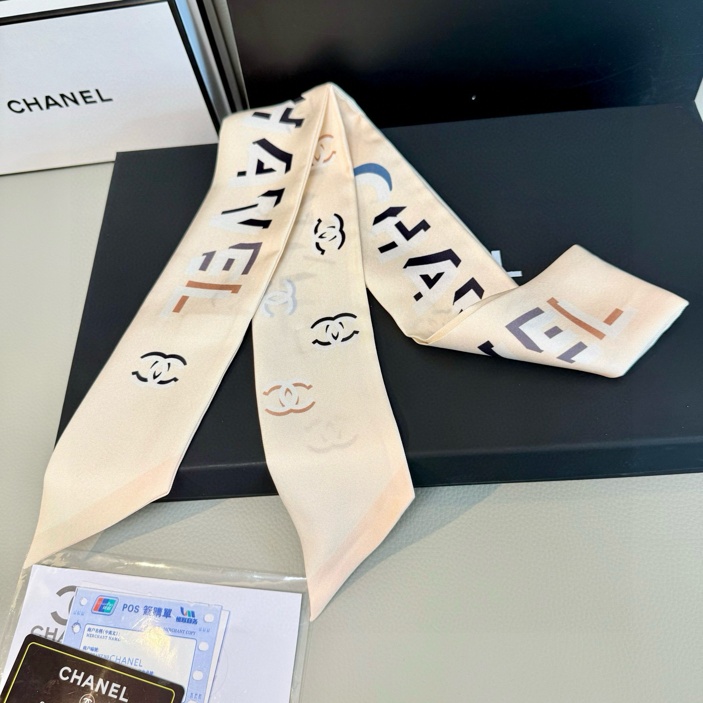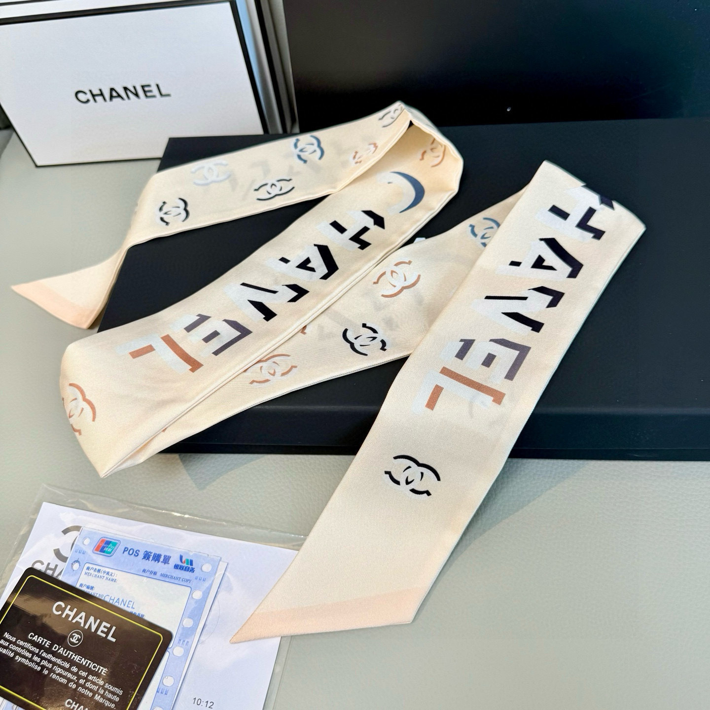 Moreover, the Chanel Printed Silk Scarf Set is designed to be versatile. They can be worn around the neck, tied to a handbag, or even used as a hair accessory. This adaptability makes them a valuable addition to any fashion collection.