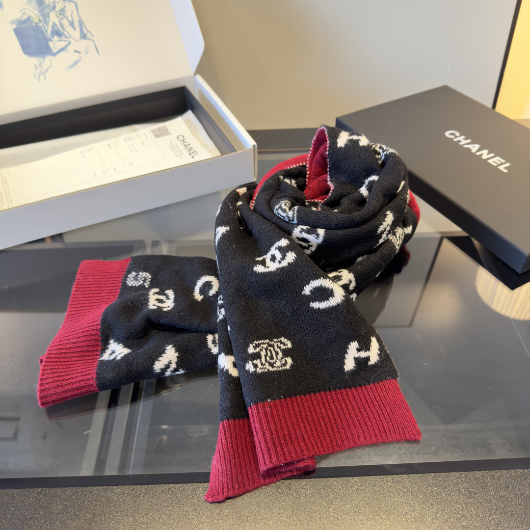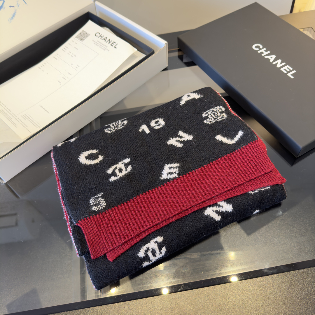 - Introducing the Chanel Black & Red Logo Wool Scarf