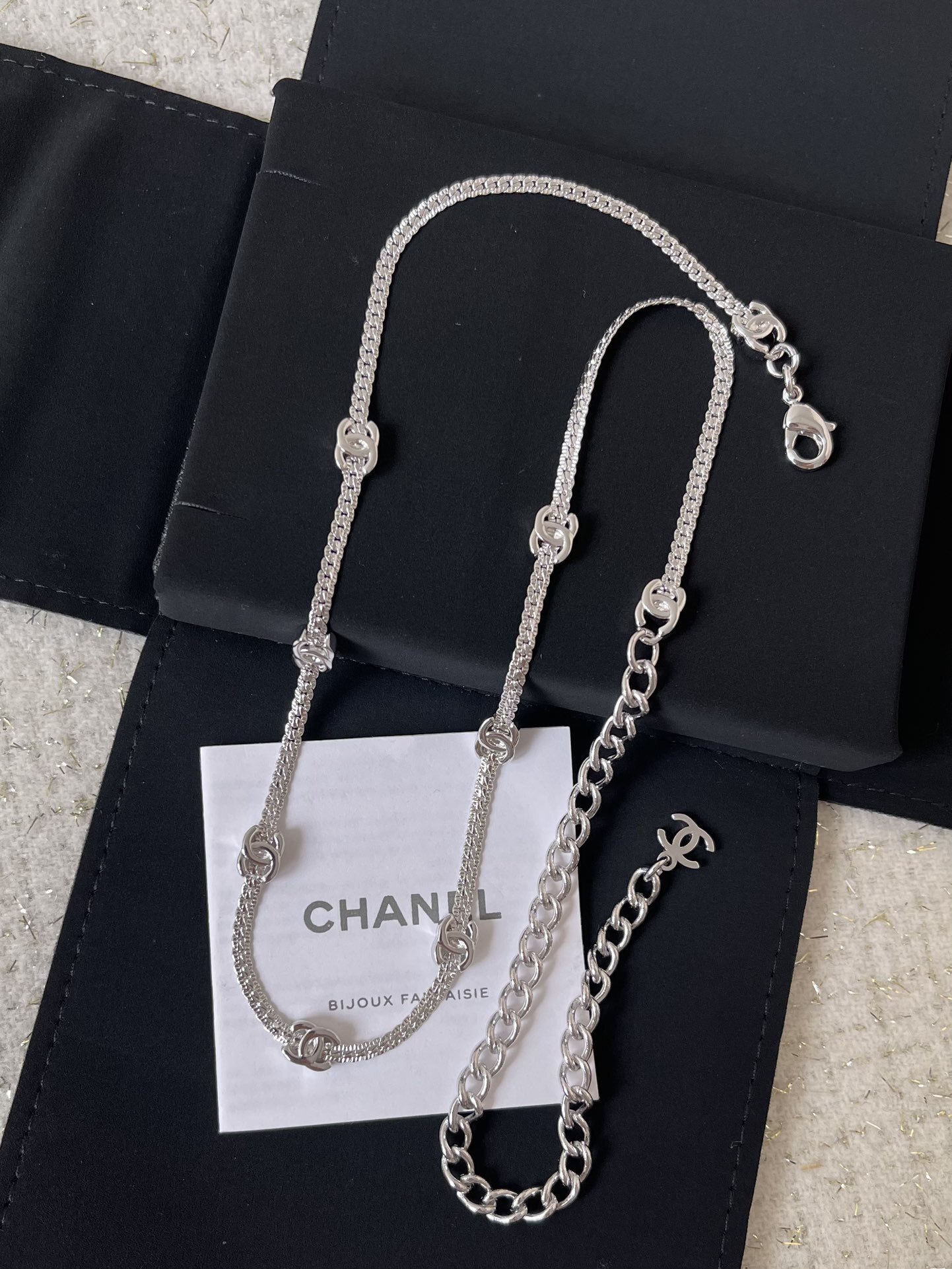 To clean the necklace, gently wipe it with a soft, lint-free cloth. For stubborn dirt or tarnish, use a silver polishing cloth. Store the necklace in its original presentation box or a soft pouch to prevent scratches and tangling. Regularly inspect the clasp and chain for any signs of wear and tear. By following these simple care tips, you can keep your Chanel necklace looking its best for generations.