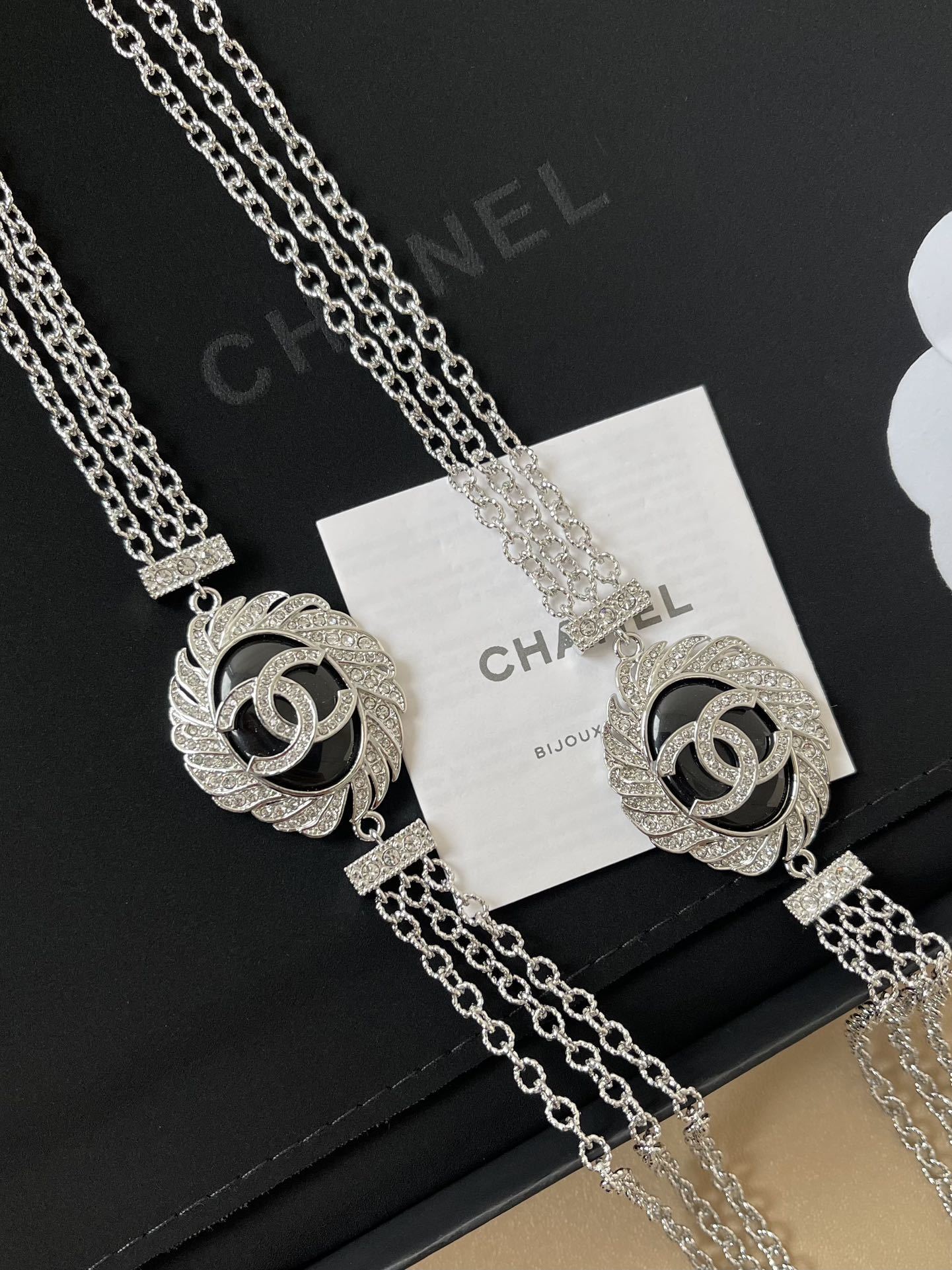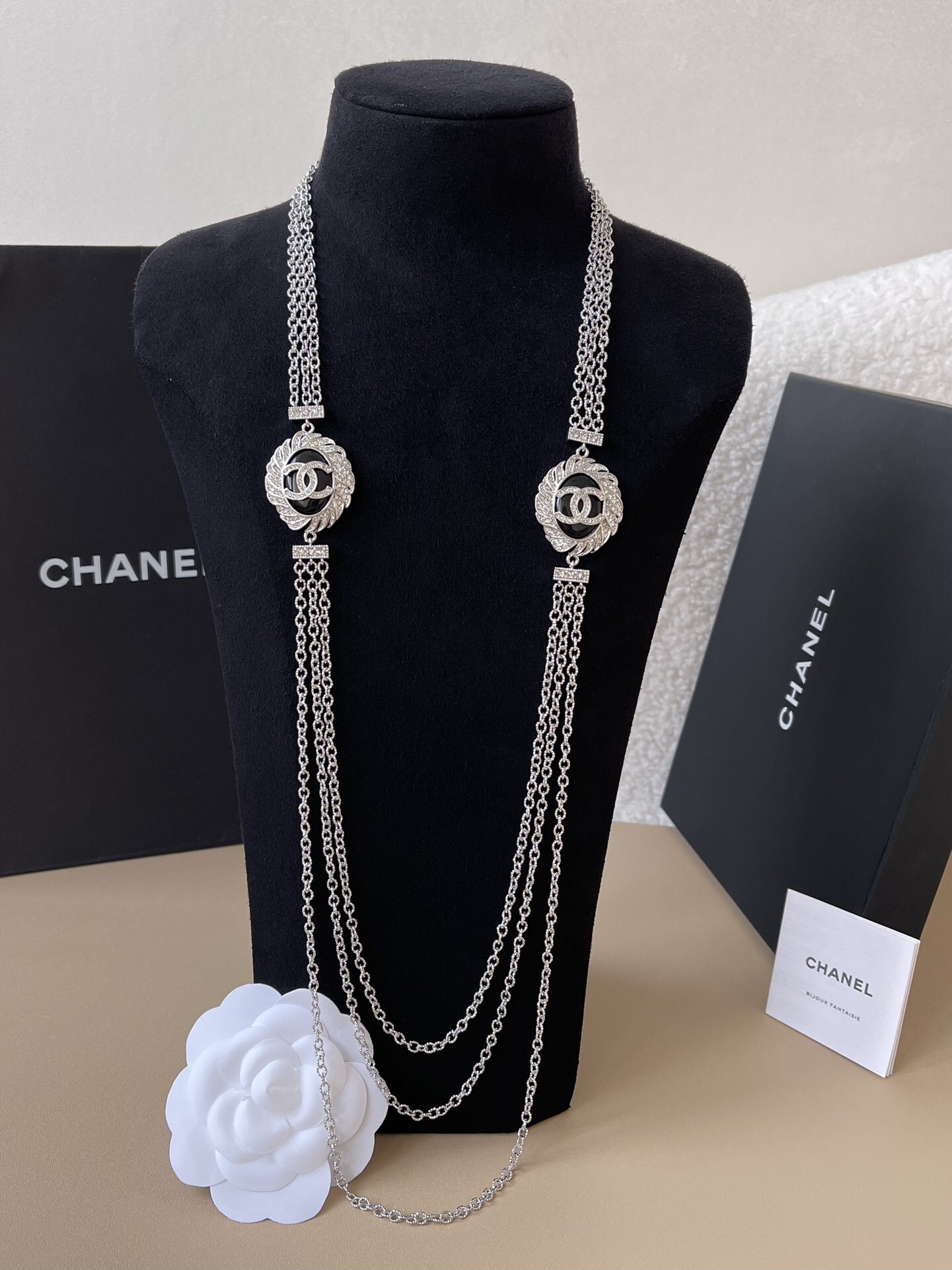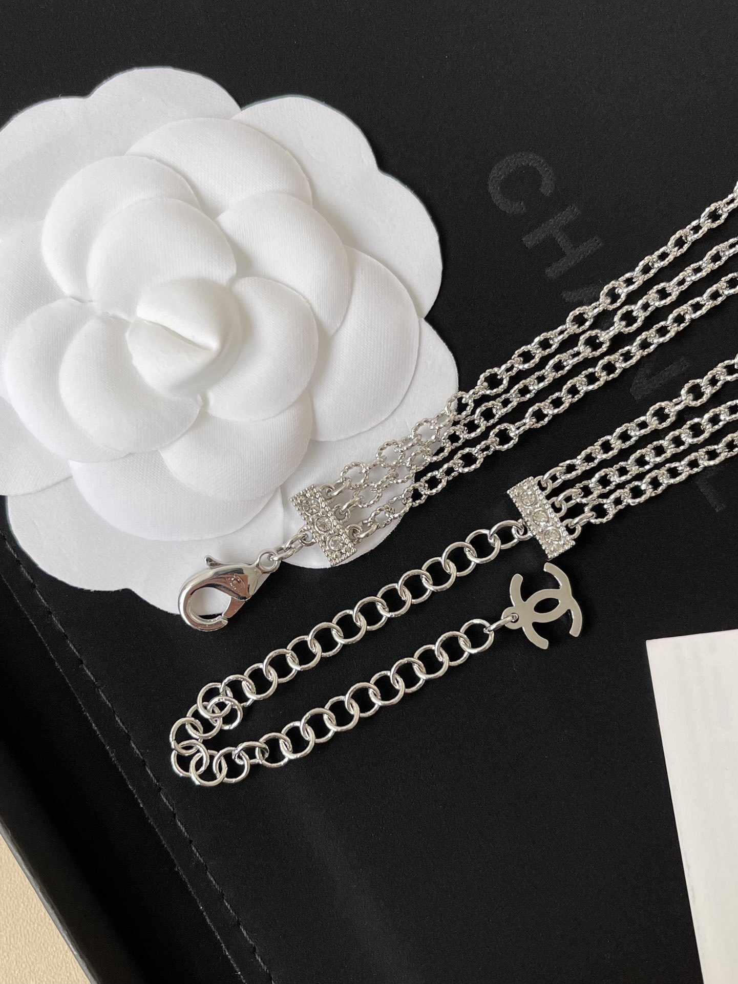 Our store collection offers a wide variety of necklaces. The **Chanel Silver Multi-Strand CC Necklace** is a timeless piece with a long pendant design.You can browse our related products to compare similar styles, materials, and price ranges before choosing the right Chanel Silver Multi-Strand CC Necklace for your needs.